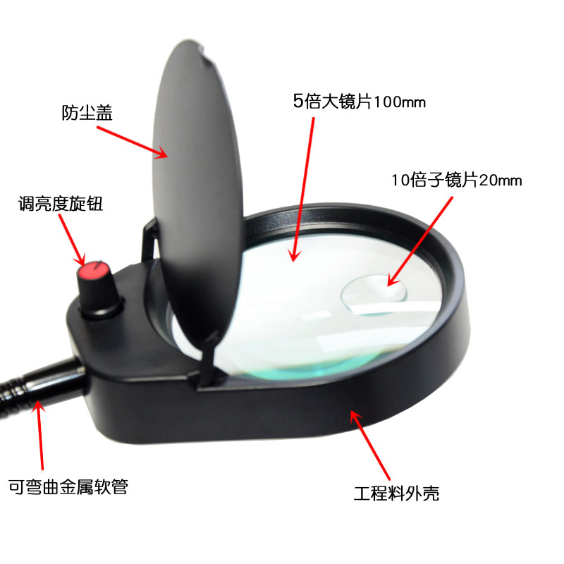 智塑子母镜片台夹式放大镜老人阅读手机维修夹台式10倍放大镜带le