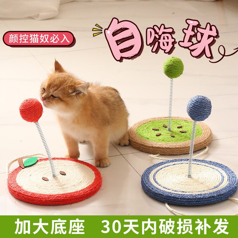新款逗猫棒批发猫咪自嗨耐解咬带响自嗨球大底盘弹簧不倒翁猫玩具