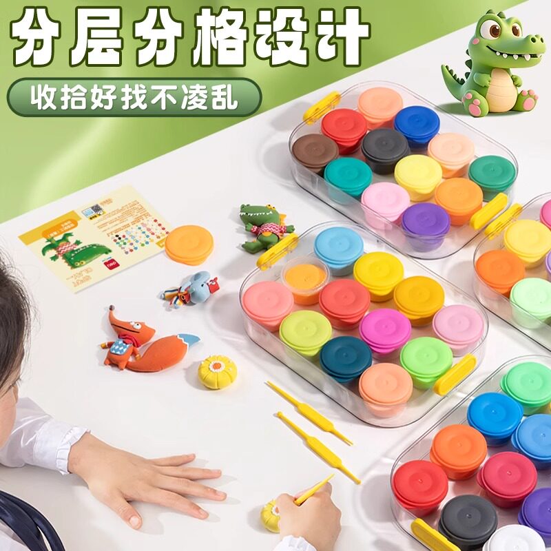 得力超轻粘土彩泥儿童安全橡皮泥小学生专用无味36色24色48色手工玩具套装食品级太空橡胶泥轻黏土无毒不粘手