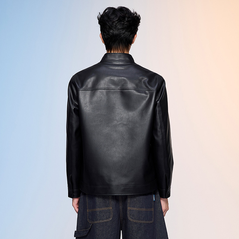 HLA/海澜之家POWER YOUNG皮夹克26春夏新时尚立领pu皮衣外套男装