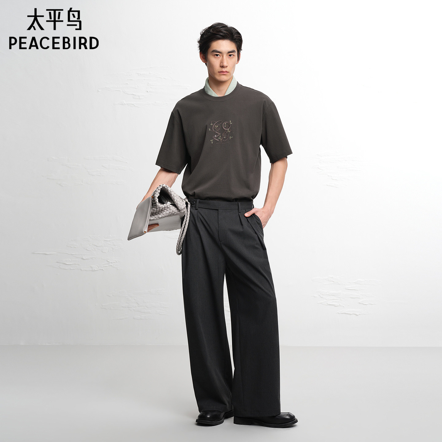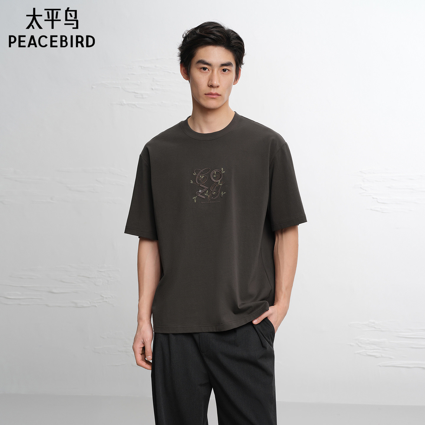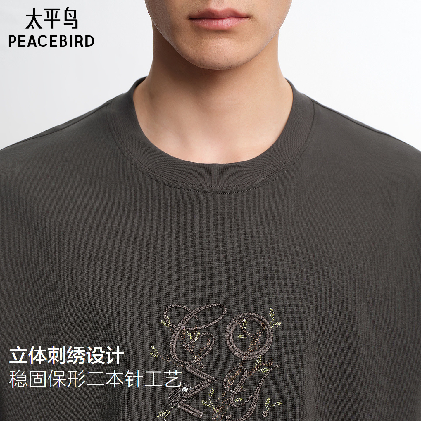 太平鸟男装花卉刺绣短袖T恤圆领时尚重磅体恤2026夏新款通勤半袖