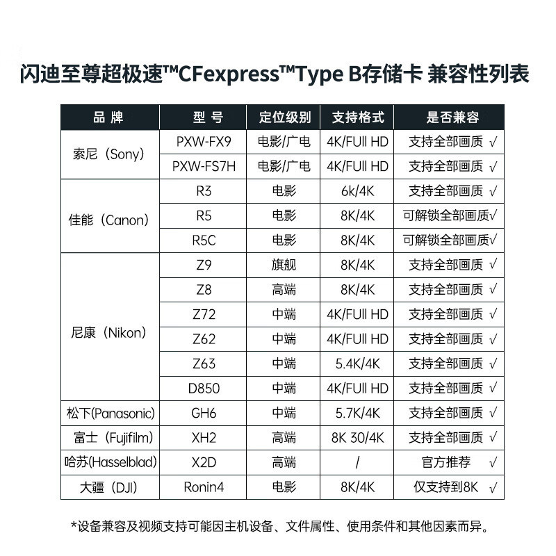闪迪CFe Type B存储卡单反摄像机8K影像内存卡兼容部分XQD相机