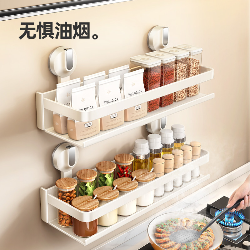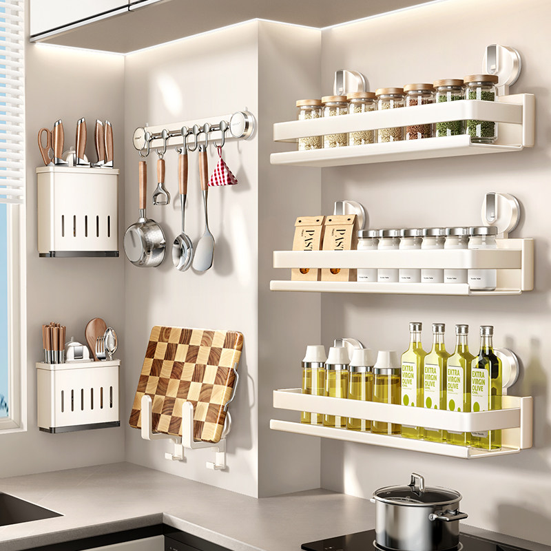 厨房吸盘置物架壁挂式免打孔刀架锅盖架挂钩筷筒调味料家用收纳架