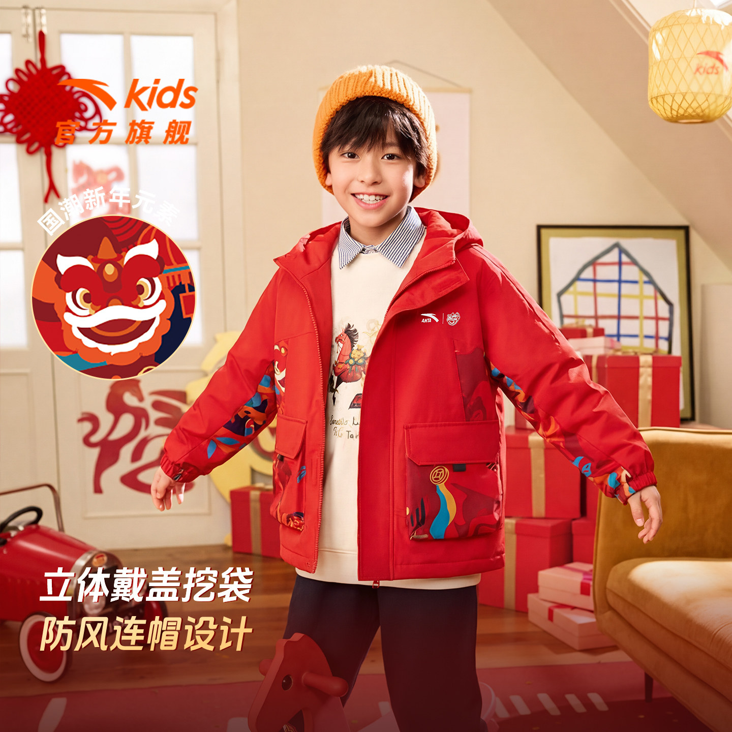 【马年红色新年】安踏儿童冬装外套三防保暖加绒衣服男童拜年服潮
