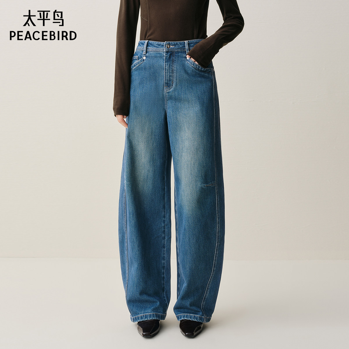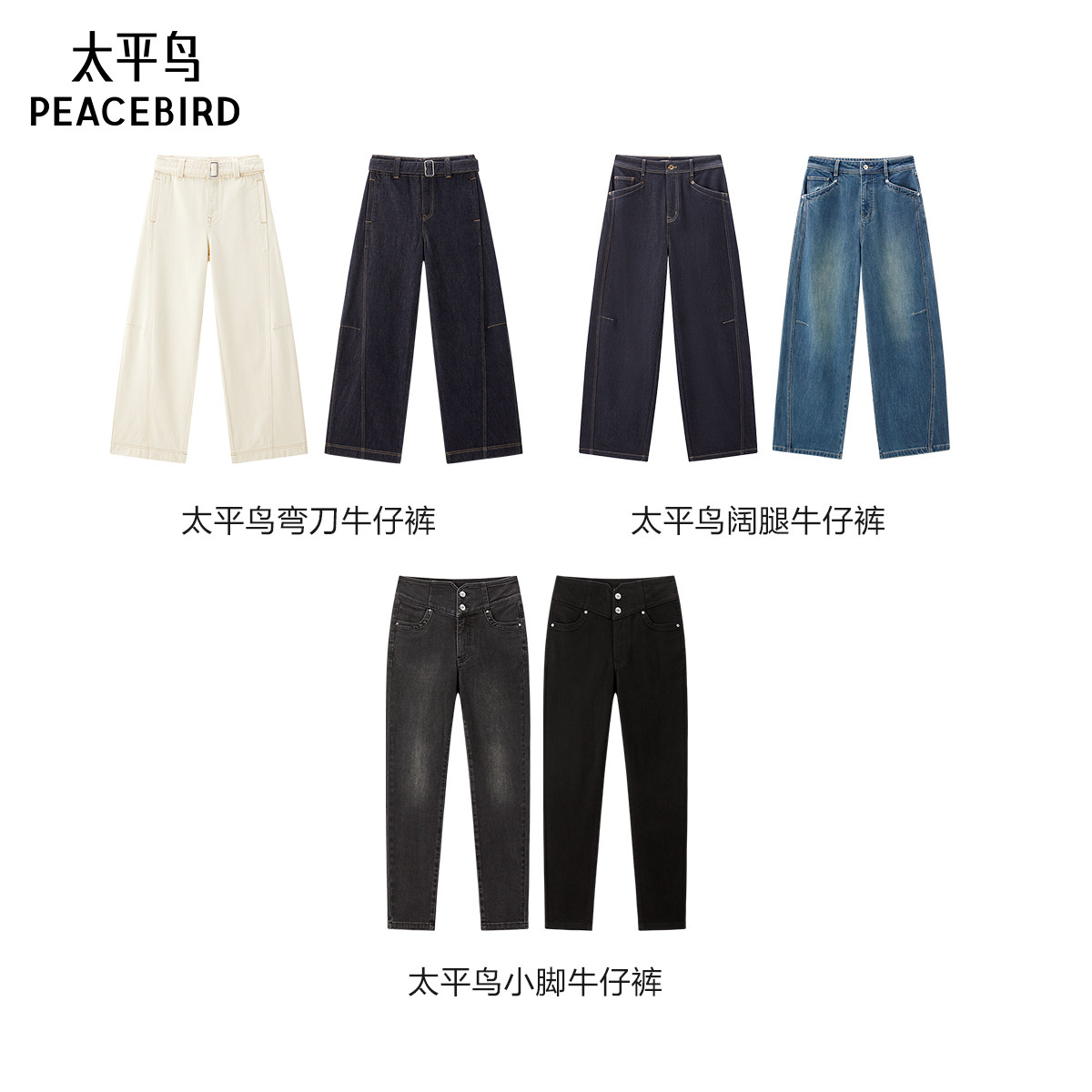【达播专属】太平鸟腰带弯刀牛仔裤阔腿牛仔裤小脚裤
