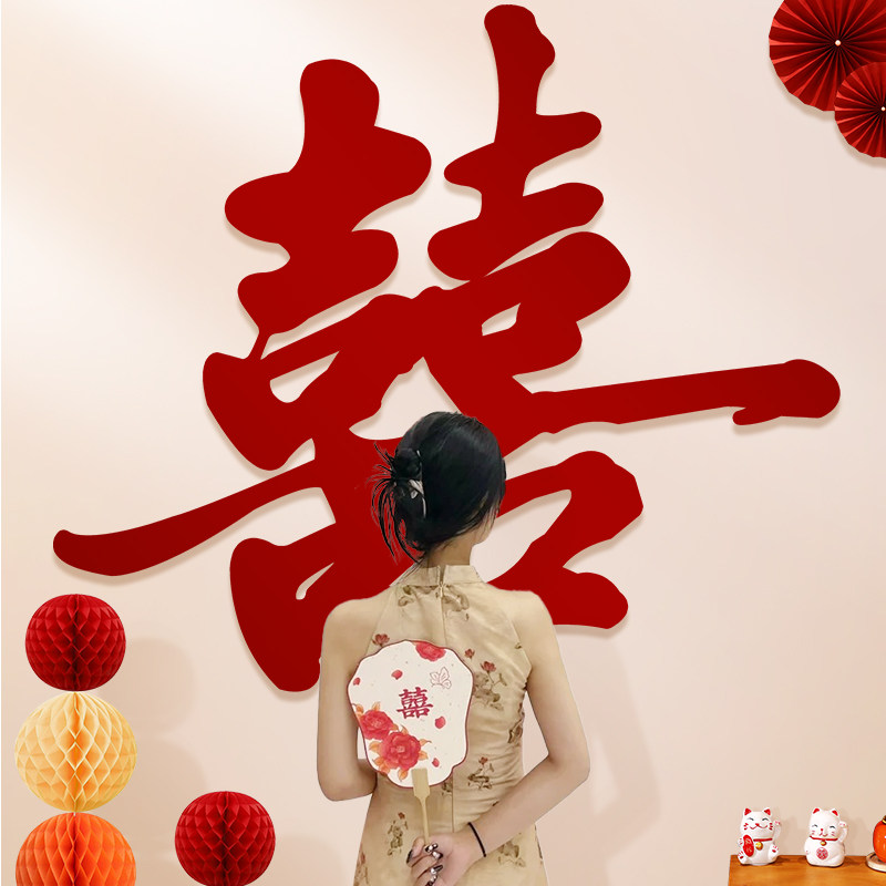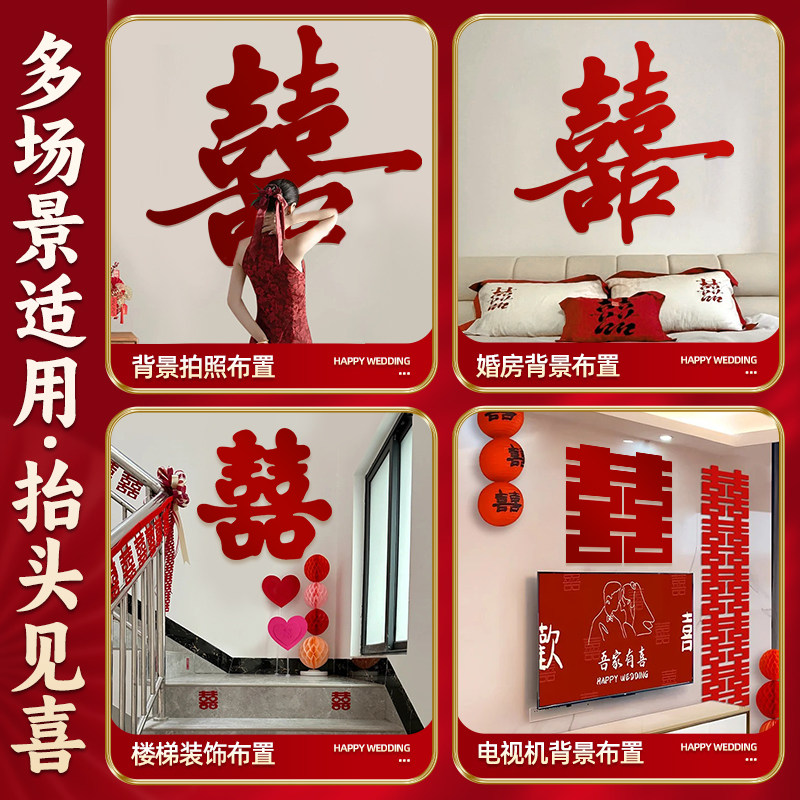 结婚超大喜字楼梯背景墙订婚婚礼装饰布置墙贴大门专用拍照道具