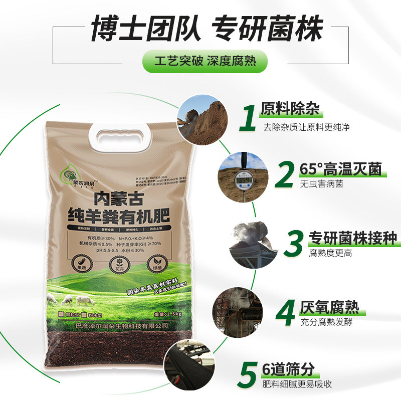 内蒙古发酵纯羊粪有机肥腐熟发酵蔬菜花卉绿植通用国标525标准