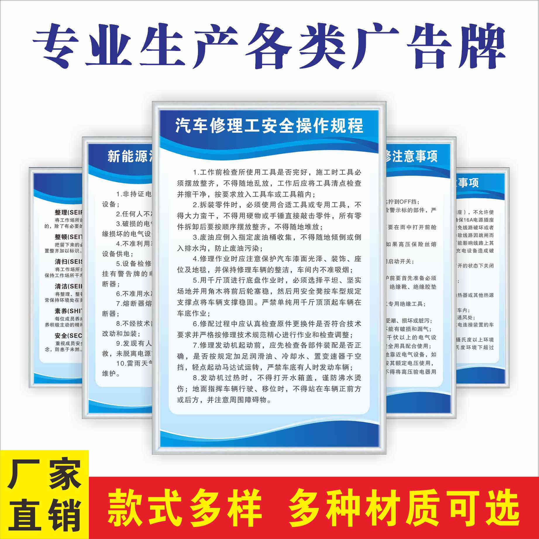 新能源汽车维修管理制度牌车辆充电注意事项修理工操作规程制度定制