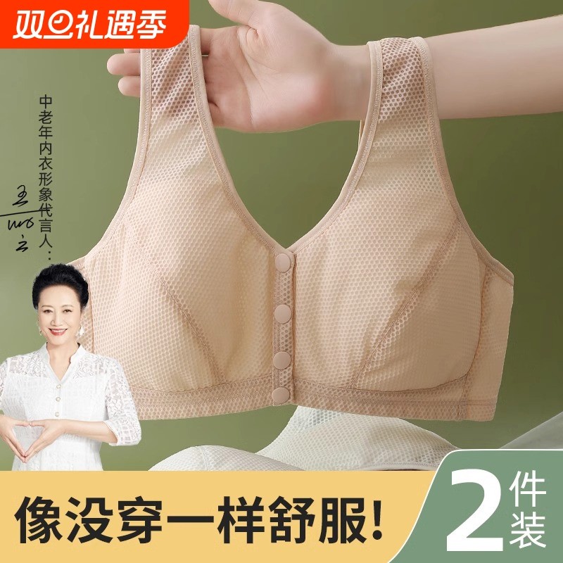 妈妈内衣女中年中老年人女士无钢圈前扣背心式大码文胸前开扣固定