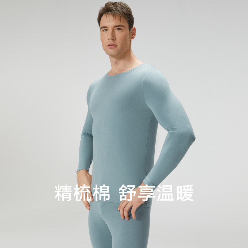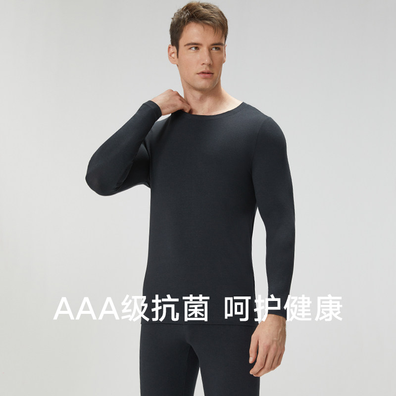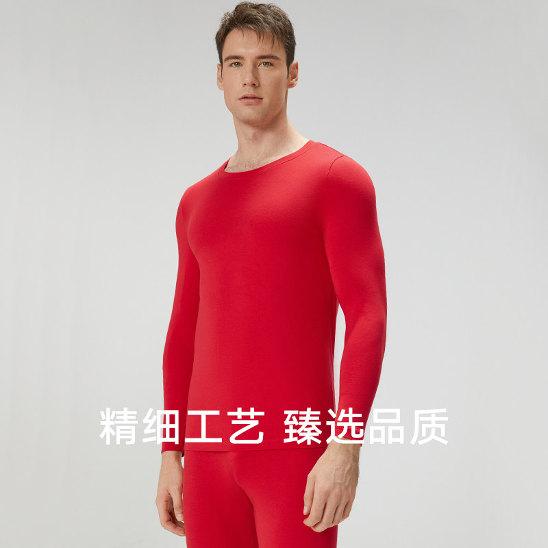 曼妮芬MW1男士圆领棉质暖衣暖裤抗菌秋衣裤打底套装本命年红色