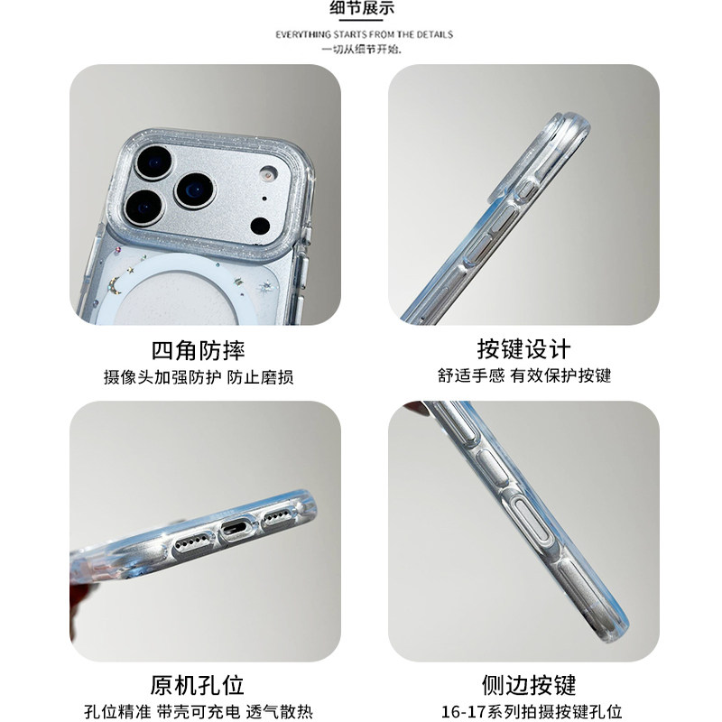 kaia日韩ins浪漫蓝色行星月亮适用苹果17promax手机壳iphone16pro新款13女14pro磁吸支架15pro透明防摔手机套