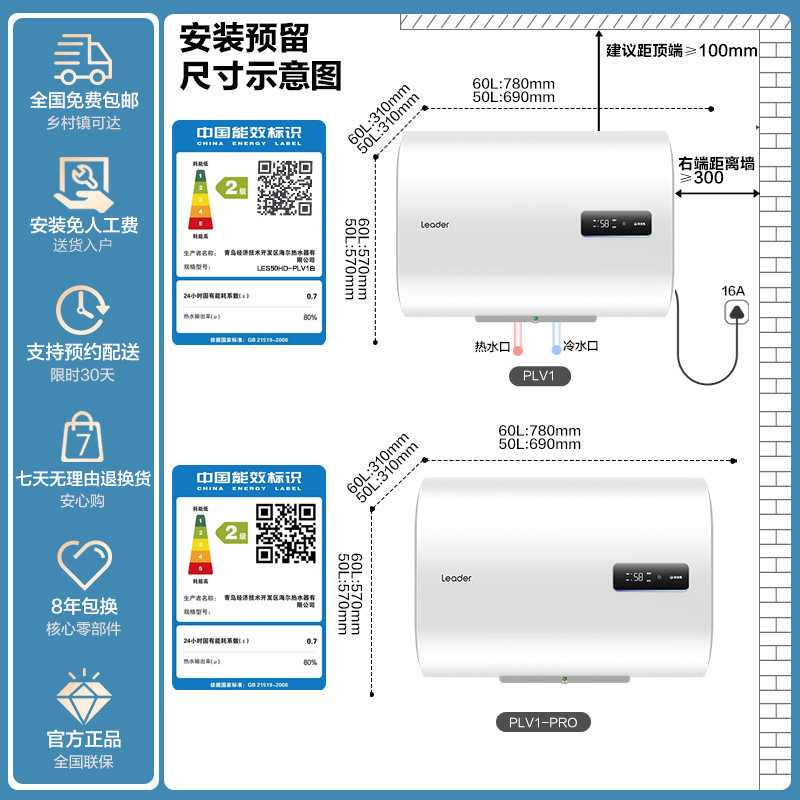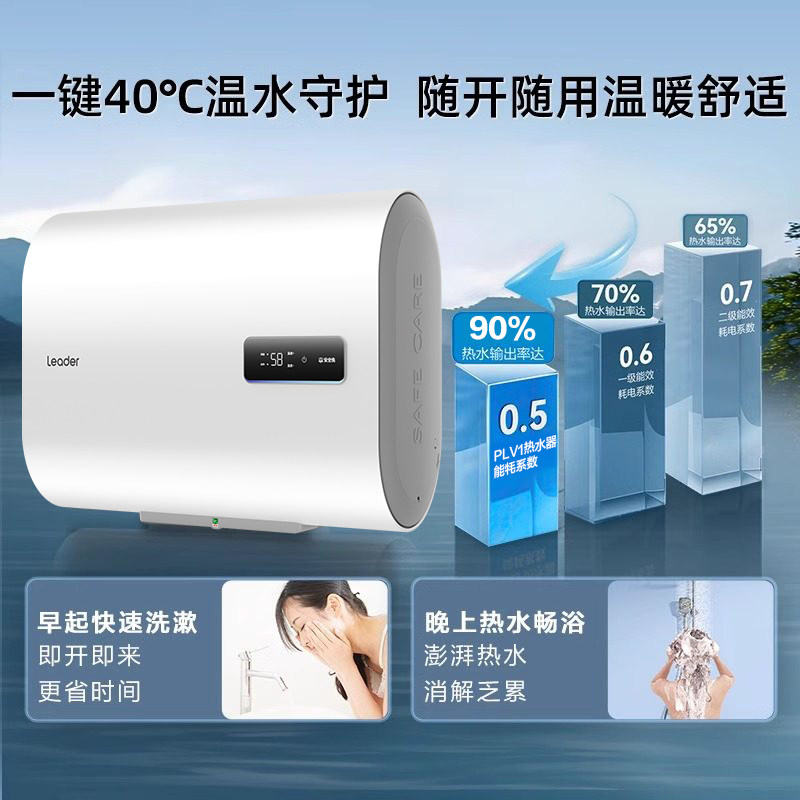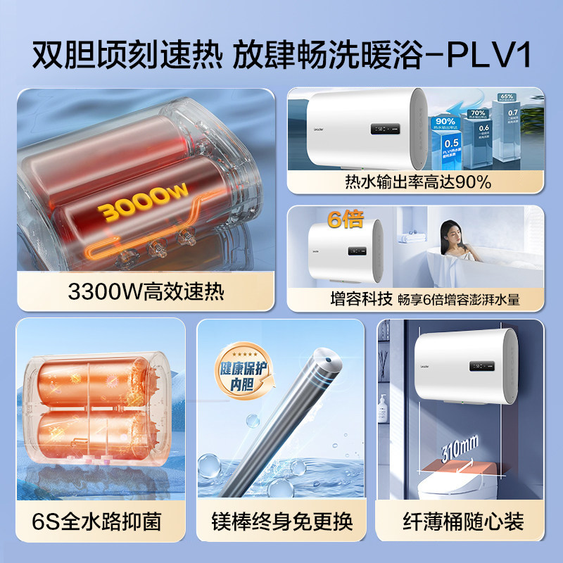海尔电热水器扁桶家用60升镁棒免更换纤薄双胆50L速热节能统帅