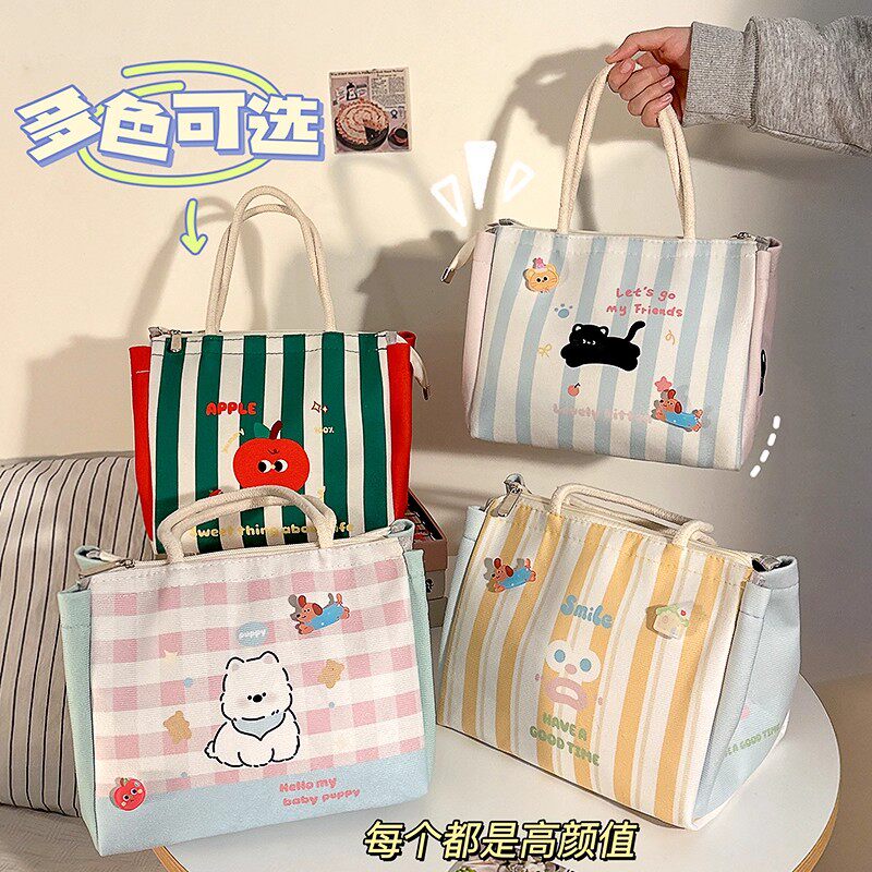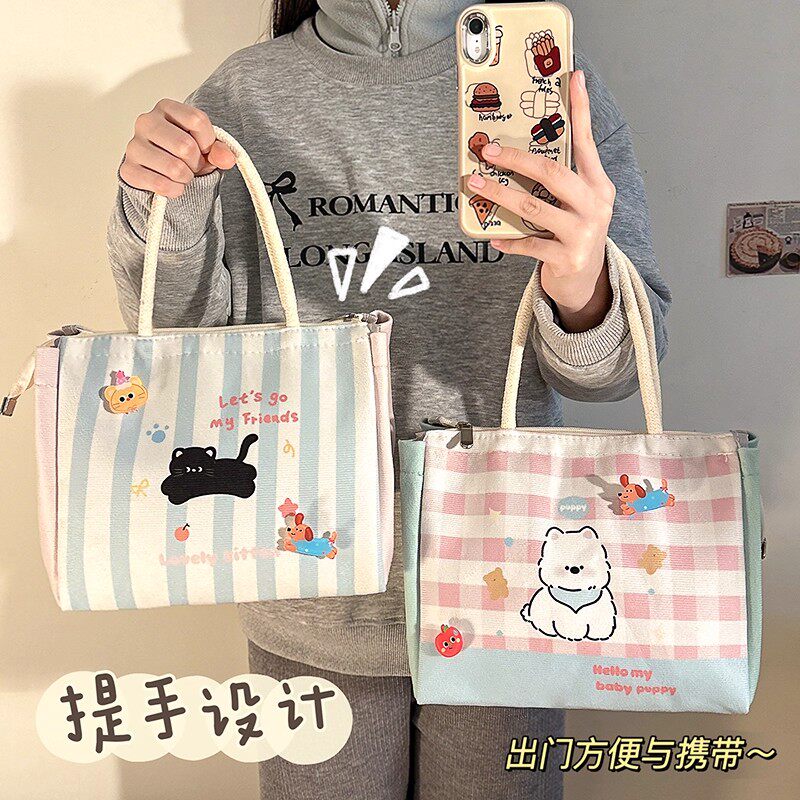 帆布手提包小巧百搭上班族便当包新款学生大容量饭盒袋简约手提袋