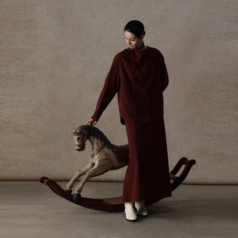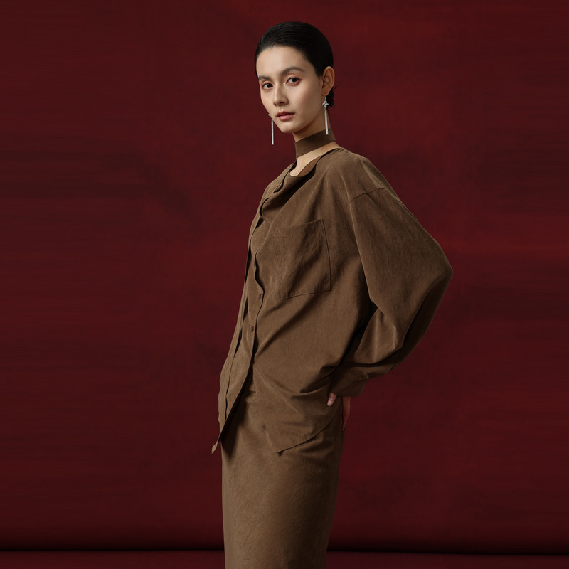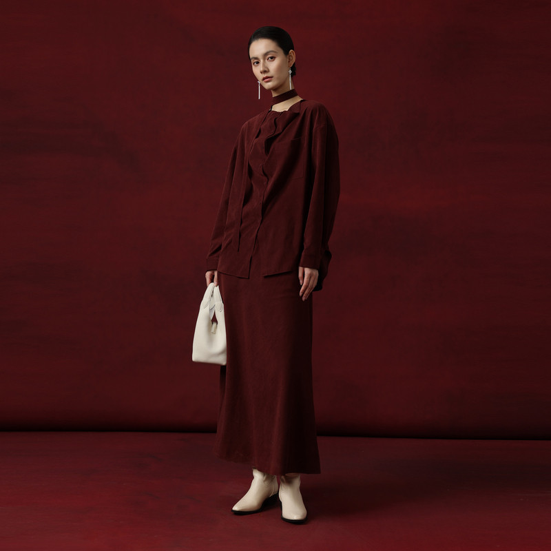 AIRIQI商场同款25冬新款休闲通勤衬衫+中长款半裙套装女AY54TZ514