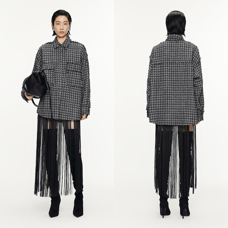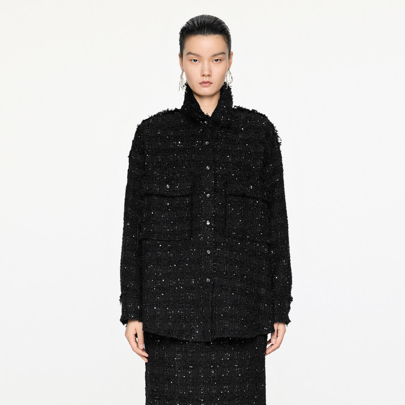 COCOBELLA静奢风珠片花纱毛呢外套短款廓形小香风西装WL507