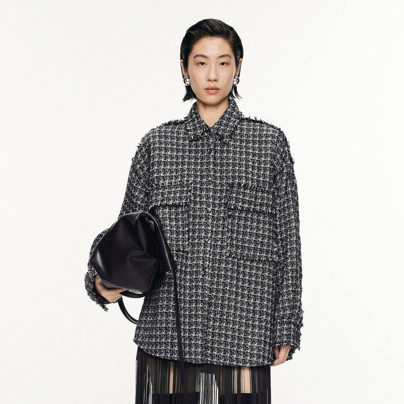 【早秋上新】JNBY/江南布衣春秋毛呢夹克宽松休闲简约通勤外套女