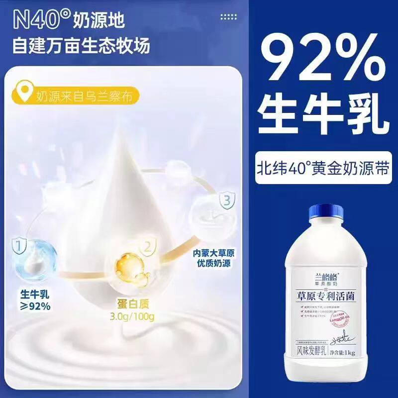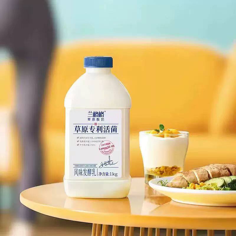 兰格格草原专利活菌酸奶制作干噎酸奶水果沙拉风味发酵乳1kg/瓶