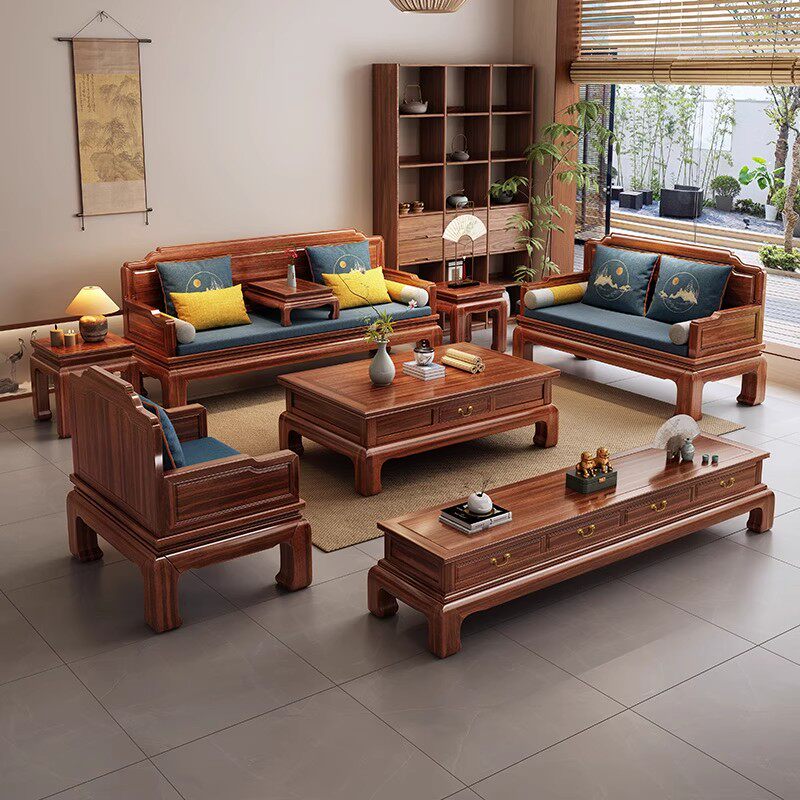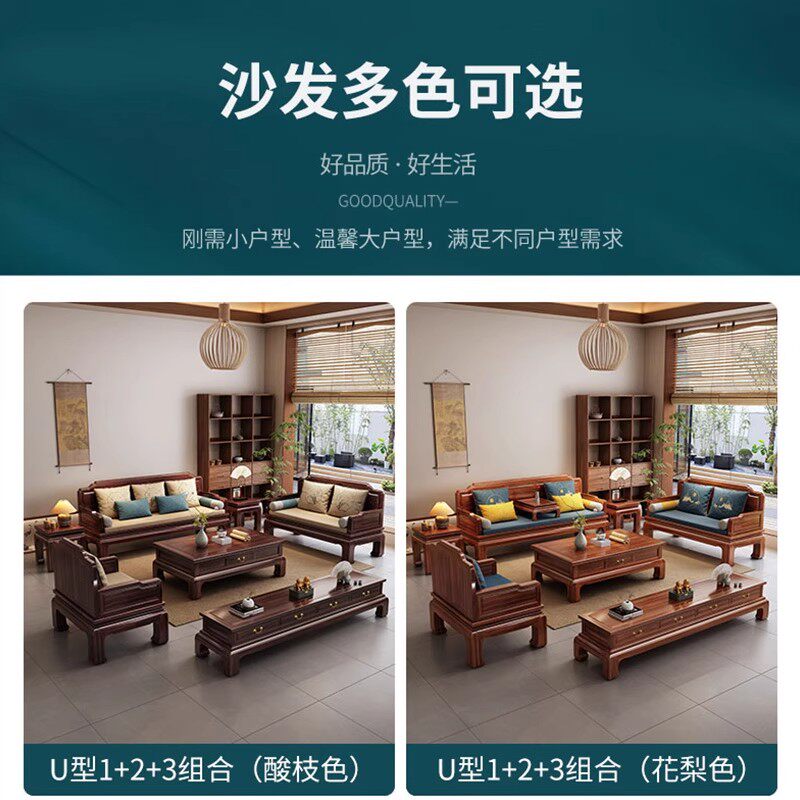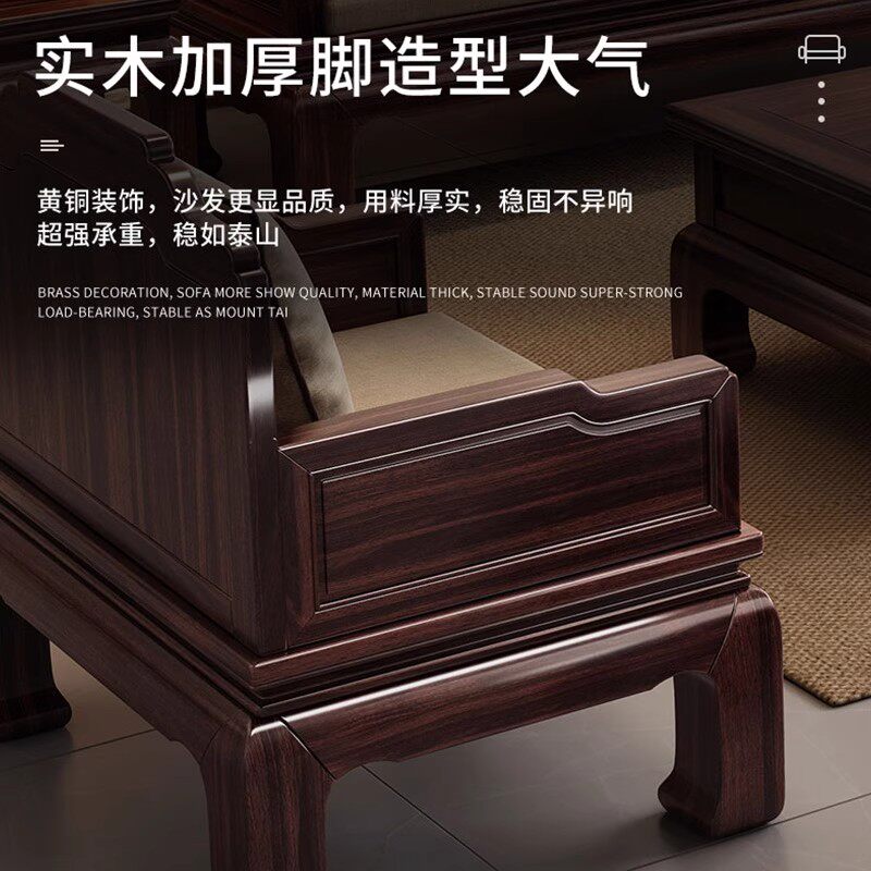 新中式乌金木实木沙发组合大小户型客厅冬夏两用别墅现代储物家具