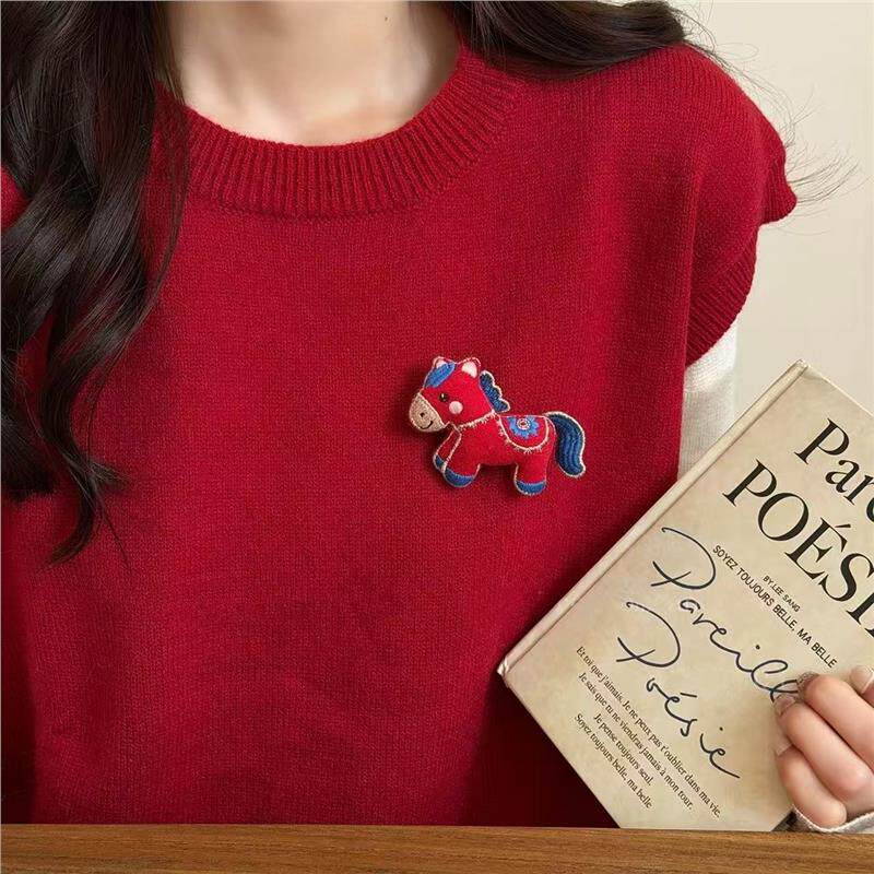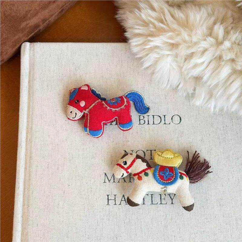 本命马年可爱布艺红色小马胸针女新年配衣服围巾装饰别针胸花配饰