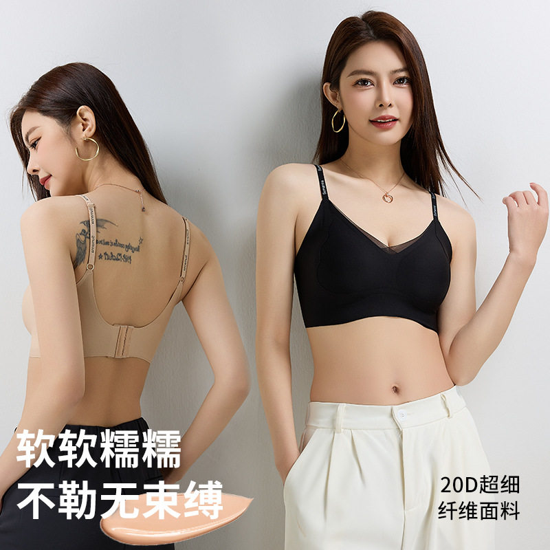 新款字母吊带内衣女2026薄款无钢圈抹胸性感美背果冻一体胸罩固定