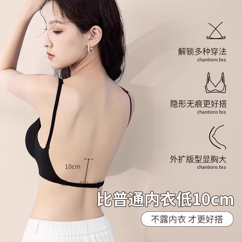 大U型美背内衣女士小胸聚拢露背抹胸防走光外扩文胸2025新款爆款