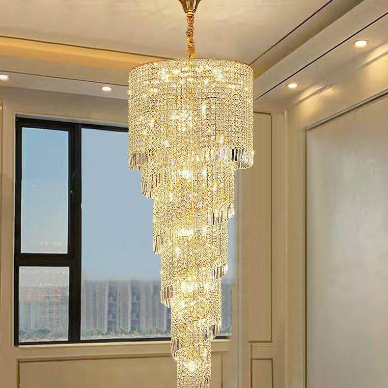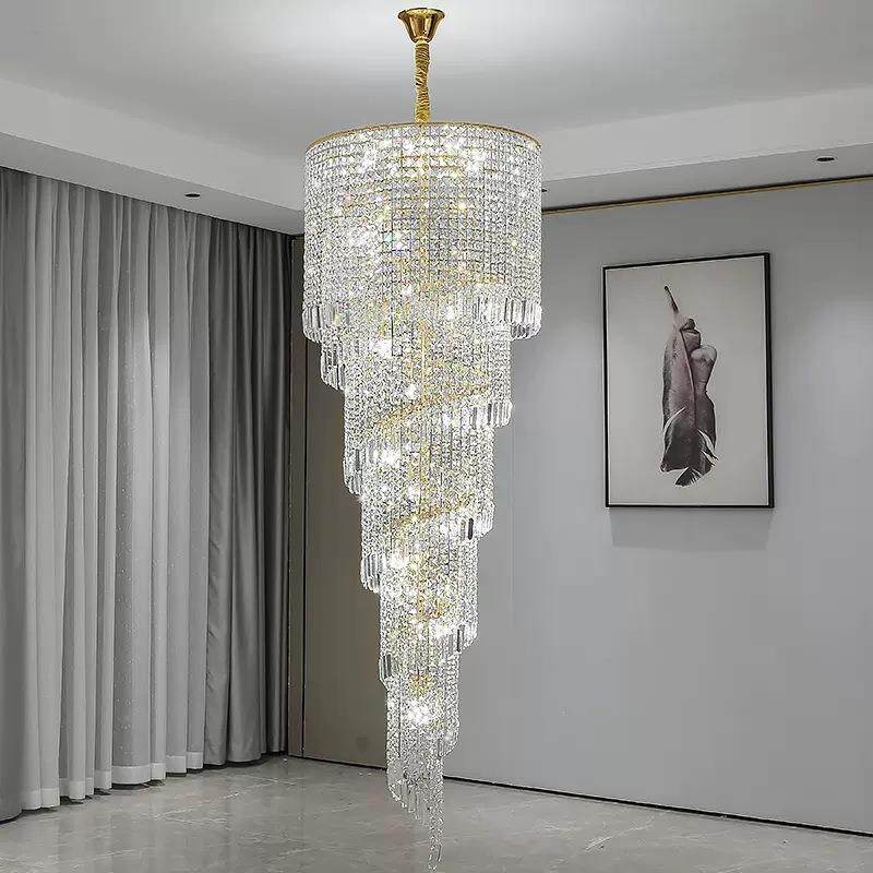 轻奢水晶吊灯客厅灯空中旋转楼梯卧室灯现代家用轻奢水晶中山灯具