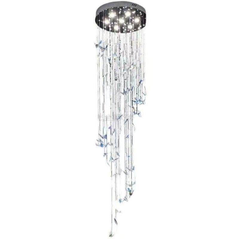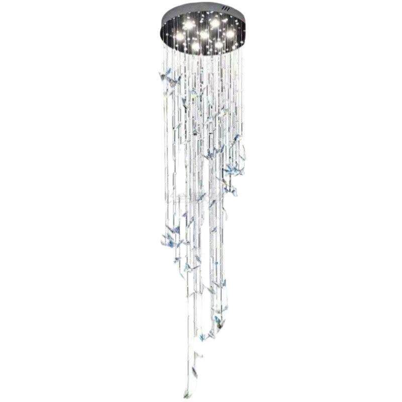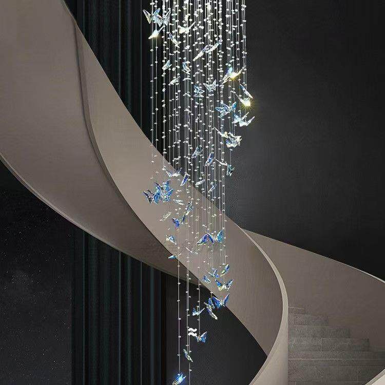 跨境现代轻奢loft楼梯水晶灯别墅复式楼客厅挑空蝴蝶旋转水晶吊灯