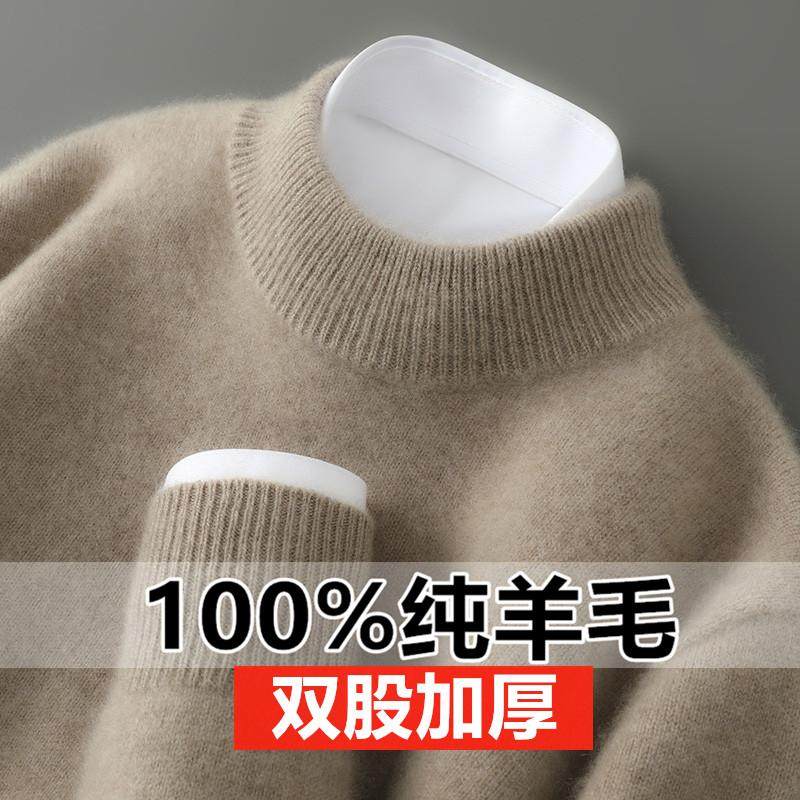 双股加厚100%纯羊毛衫半高领男毛衣秋冬季宽松套头针织打底羊绒衫
