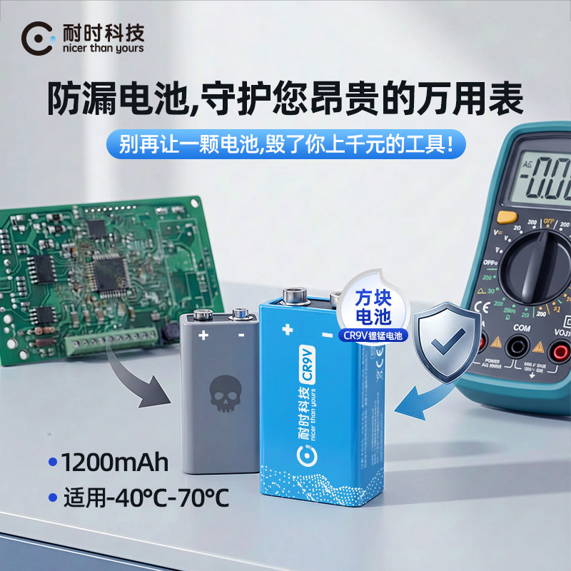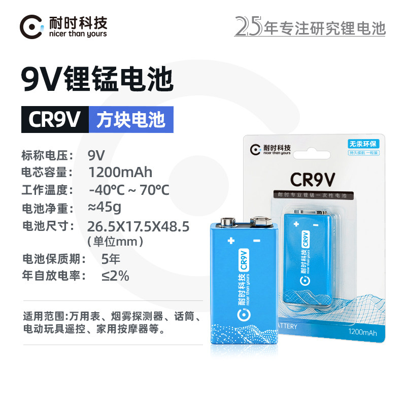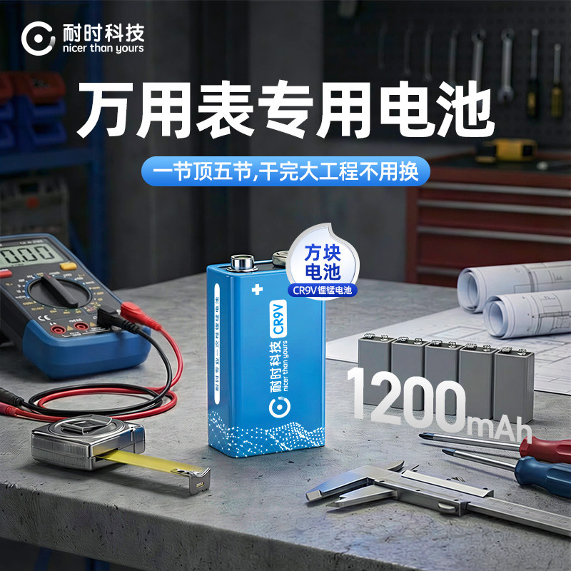 耐时科技CR9V方块电池叠层电池万用表电池烟雾报警器测距仪无线麦克风专用电池1200mAh大容量锂电池