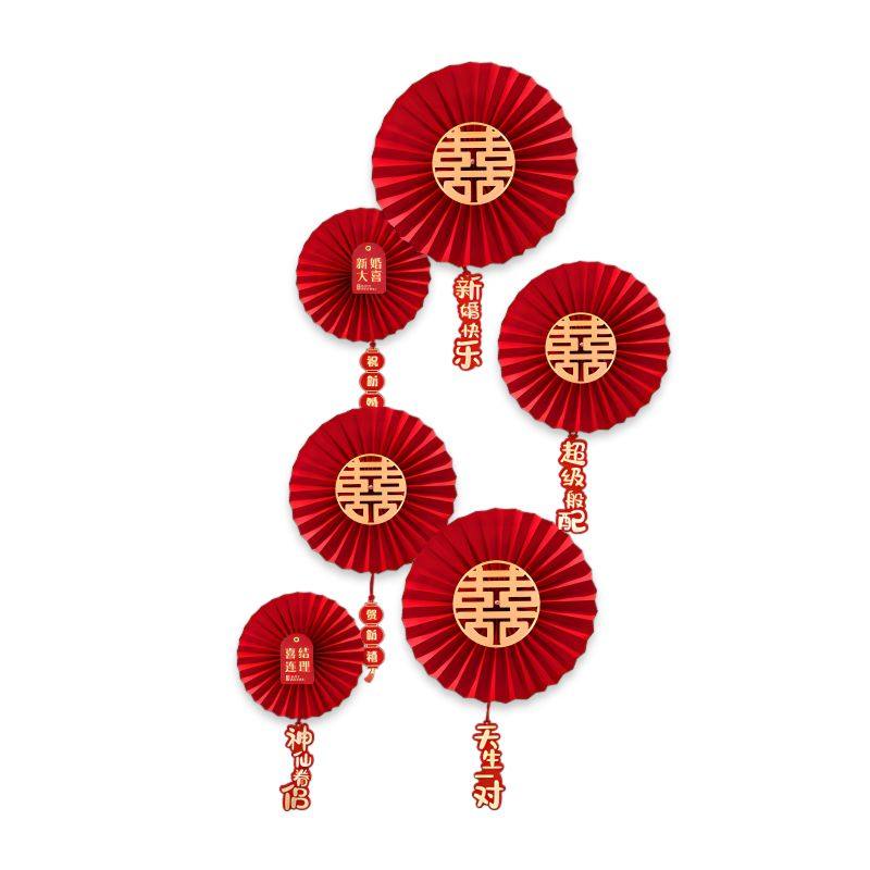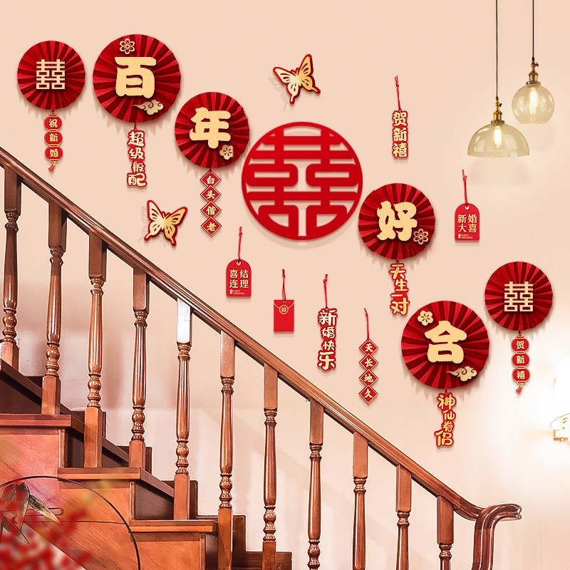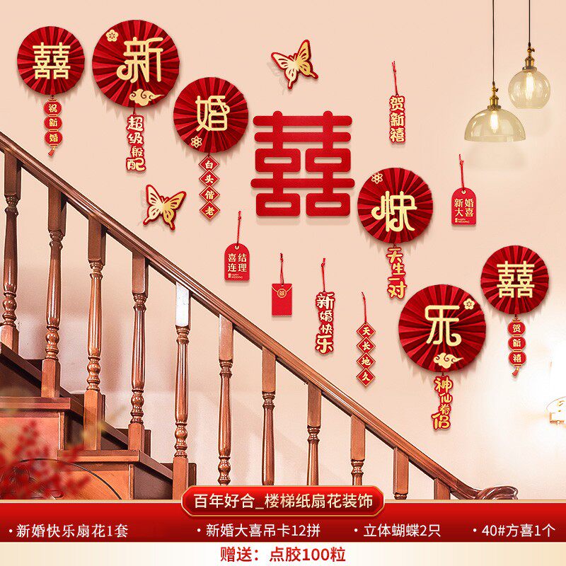 楼梯扶手装饰结婚男方用品大全客厅农村墙贴婚房布置套装喜字拉花