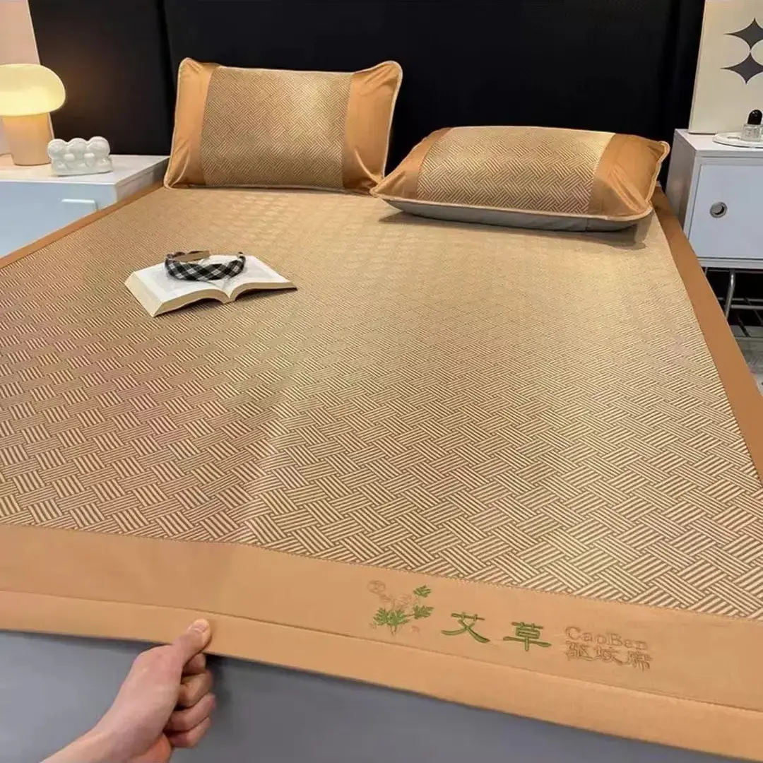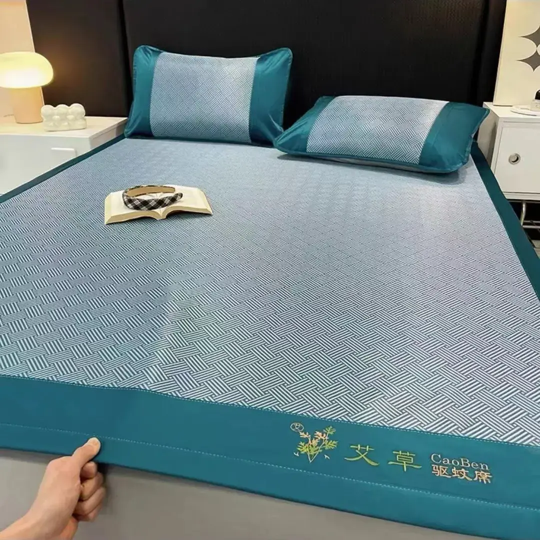 夏季冰丝凉席三件套2025新款艾草藤席子可机洗学生宿舍空调席竹席