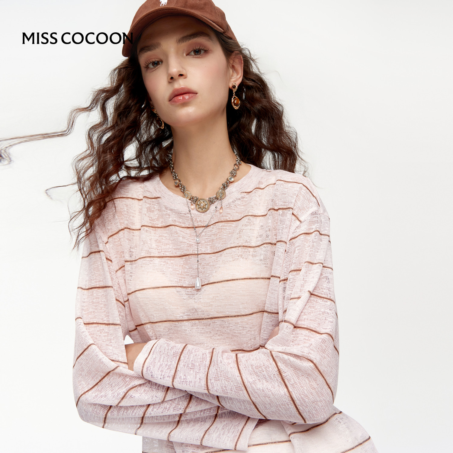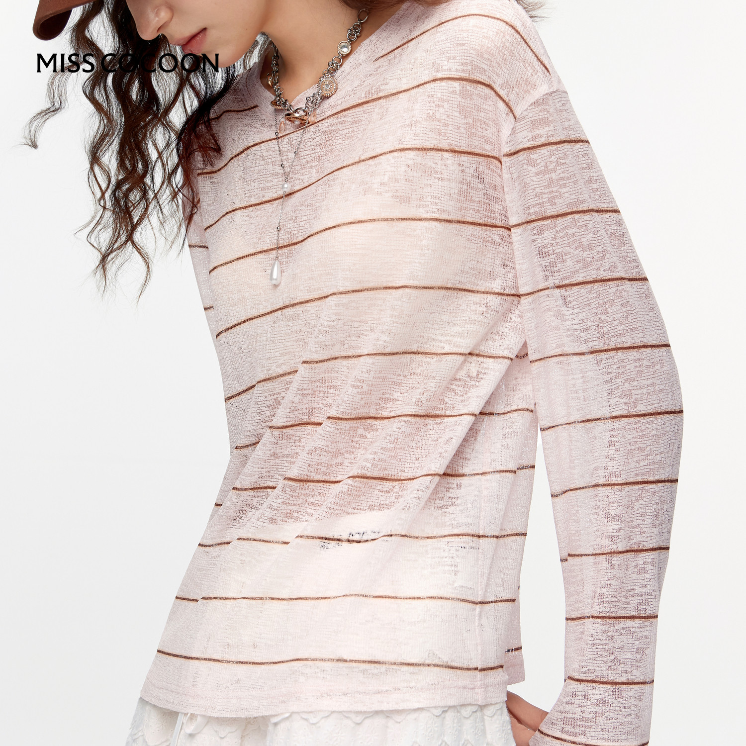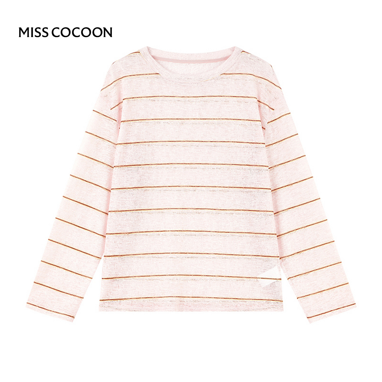MISSCOCOON可可尼粉色长袖T恤女款2025秋季新款薄款条纹针织上衣