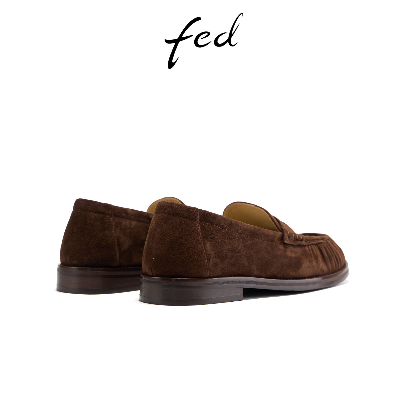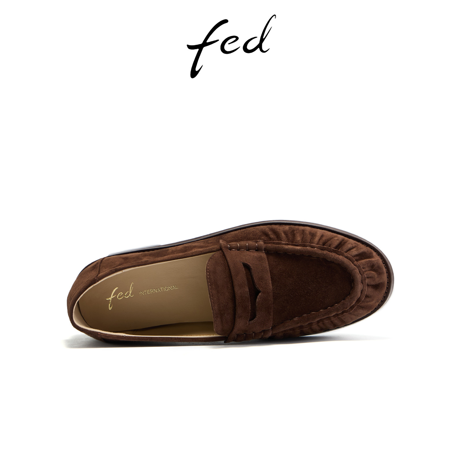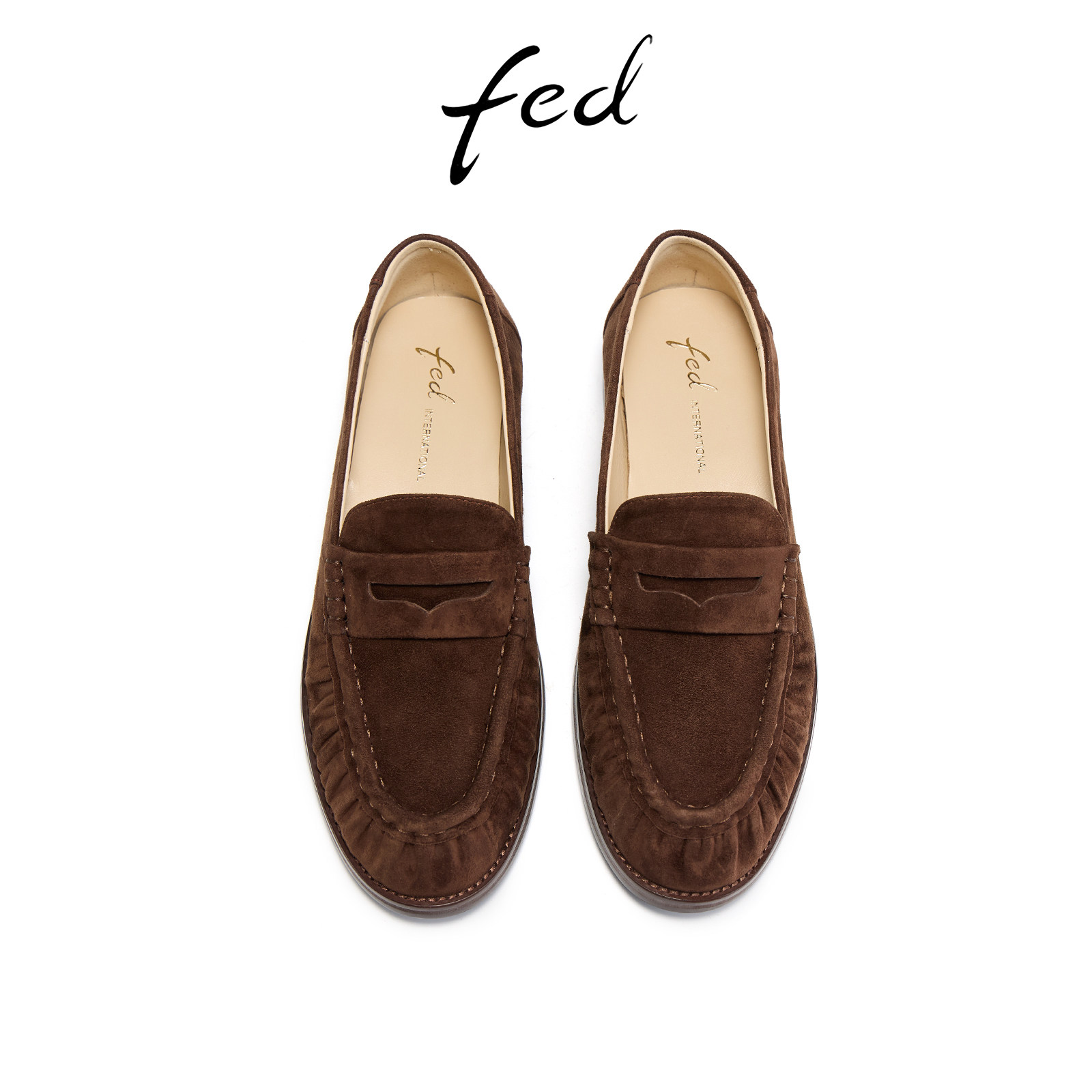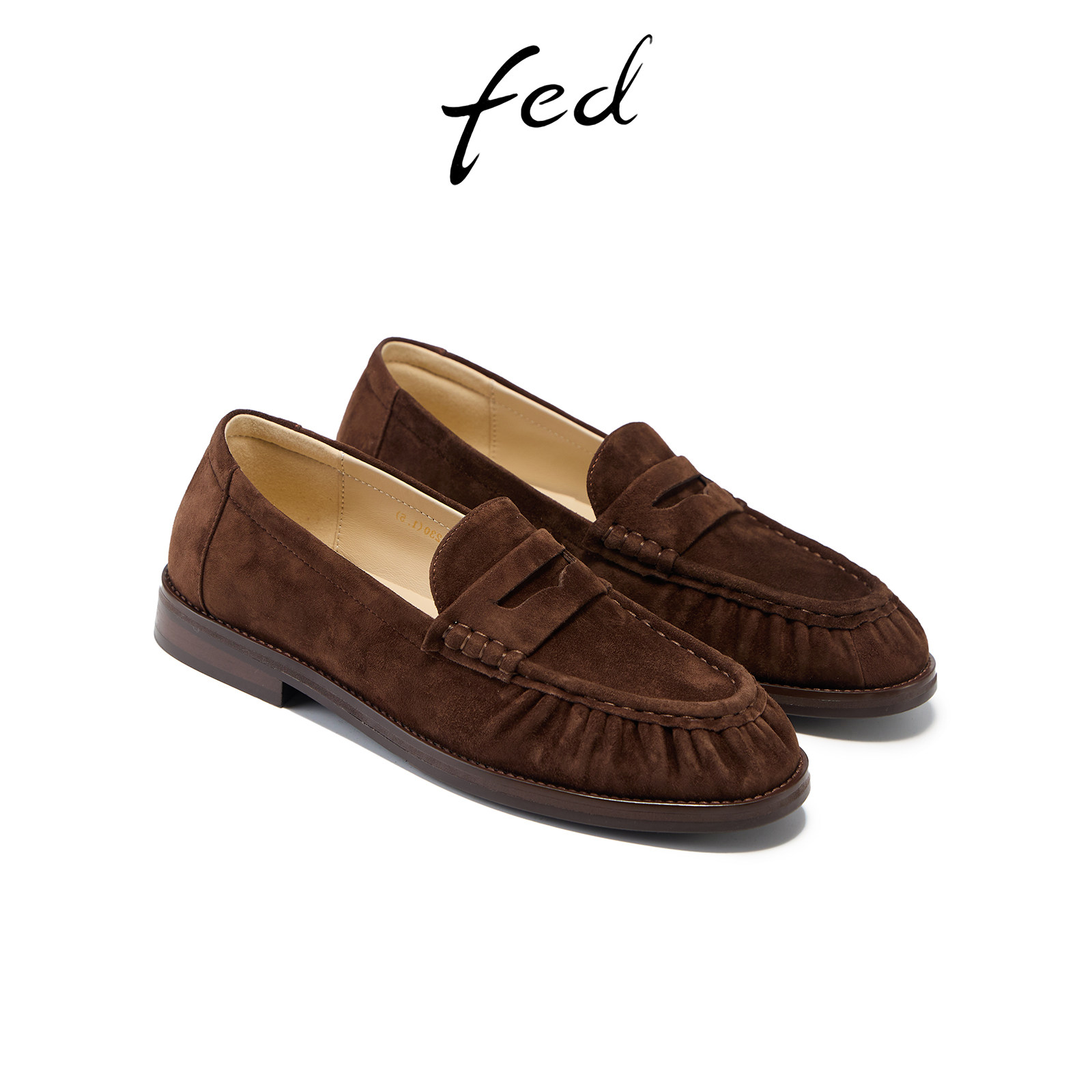 fed墨痕柔褶乐福鞋春季新款女鞋低跟单鞋褶皱豆豆懒人鞋女款YA600