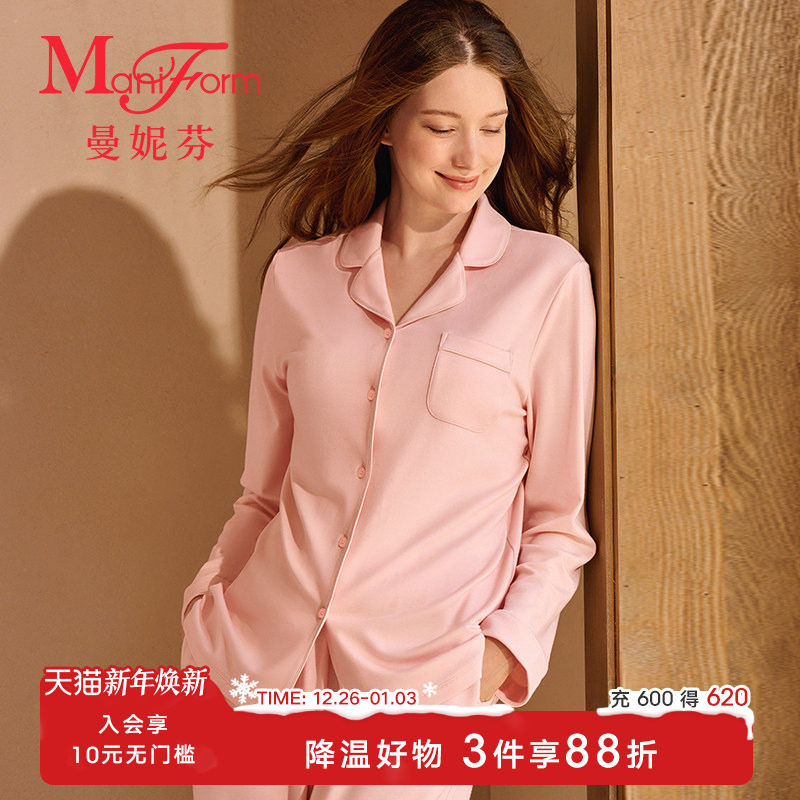 曼妮芬空调房长袖长裤睡衣女士春秋舒适家居服套装睡裤起居服