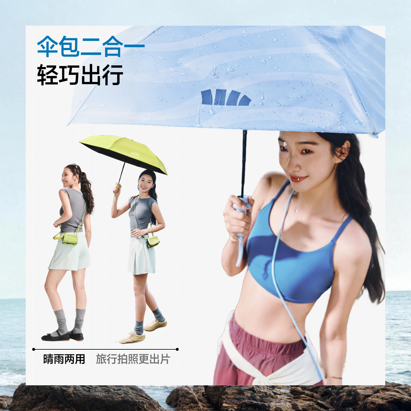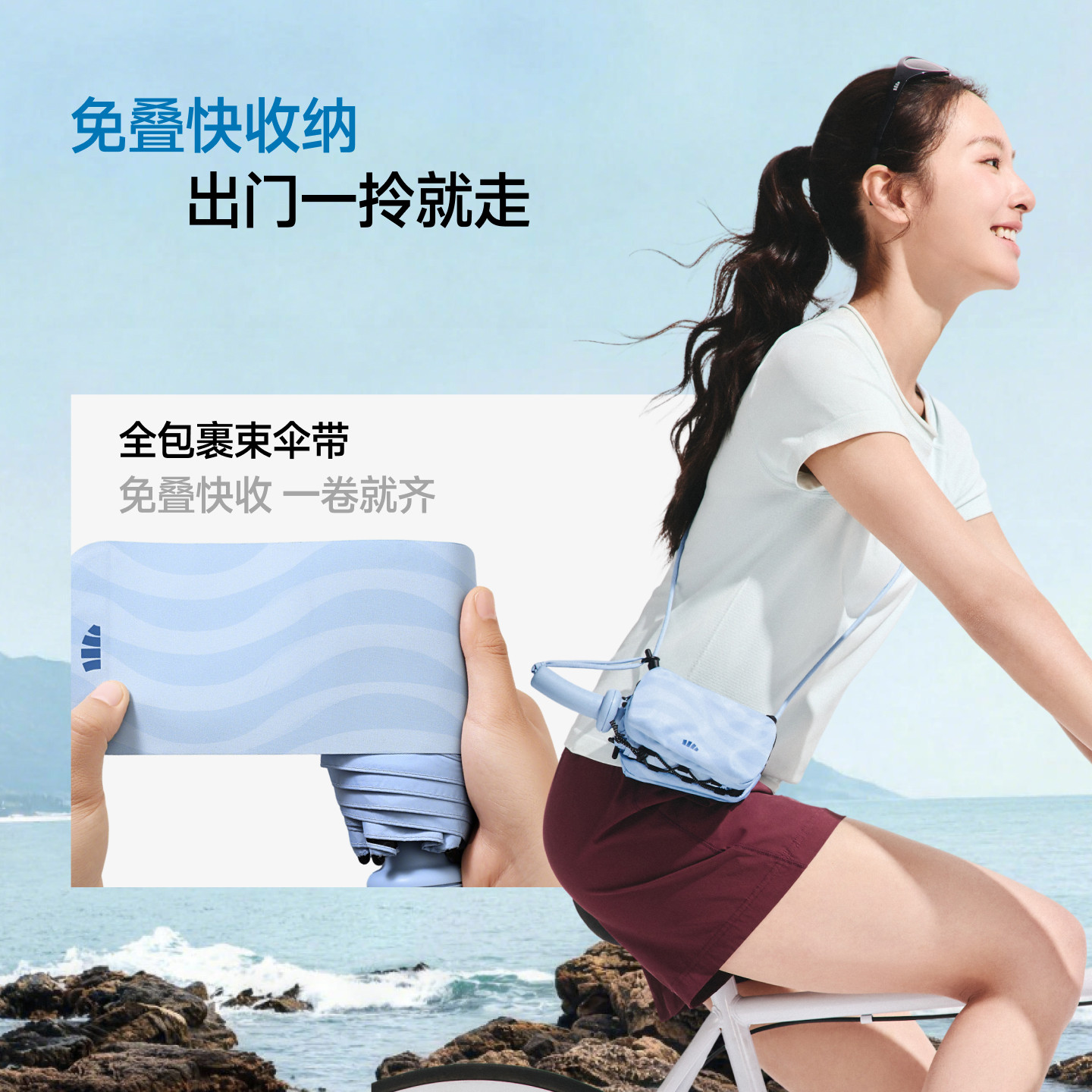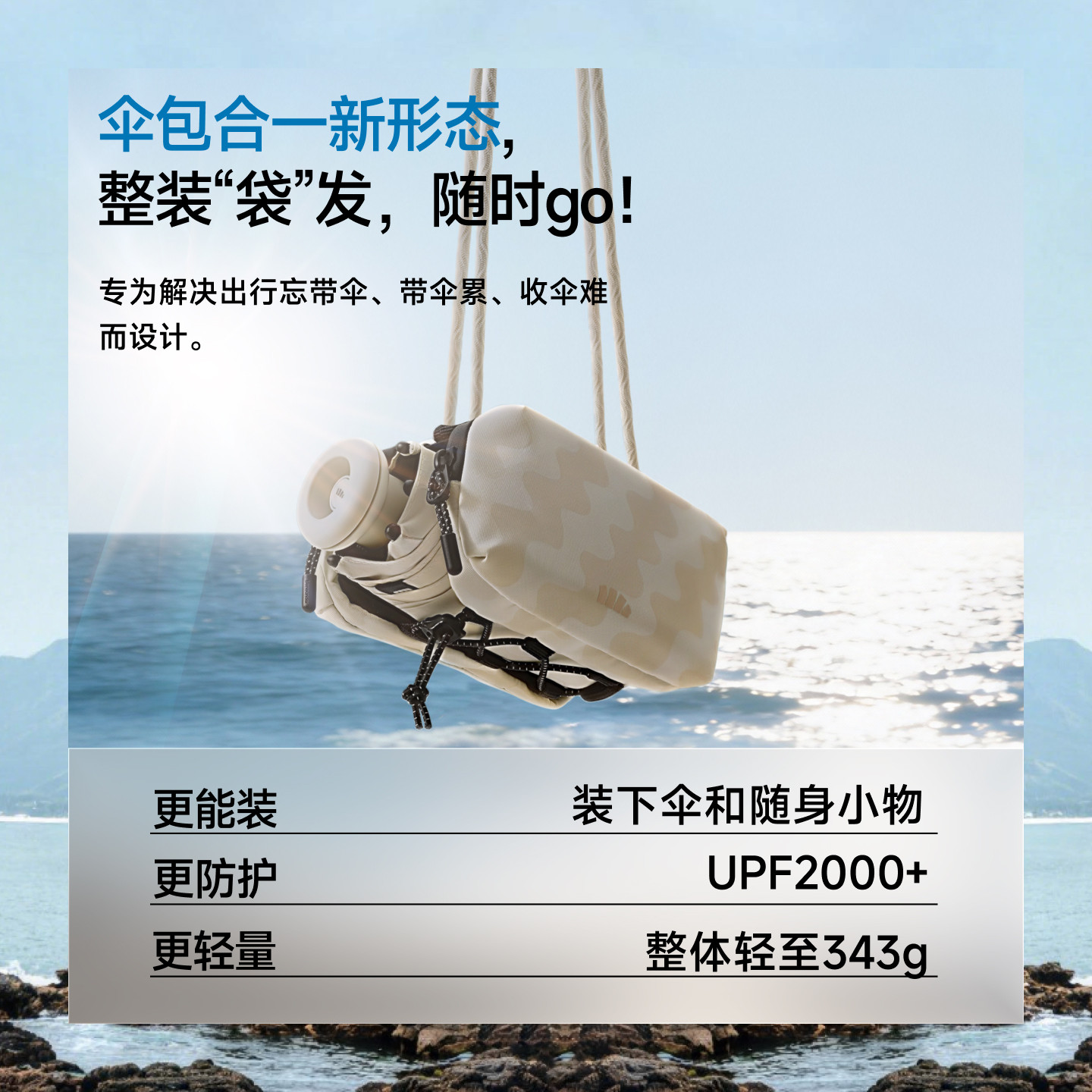 UPF2000+ 黑胶涂层 晴雨两用 自带收纳包