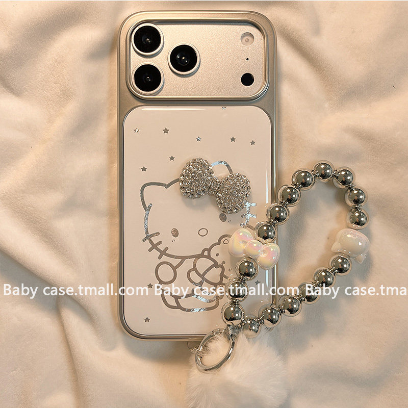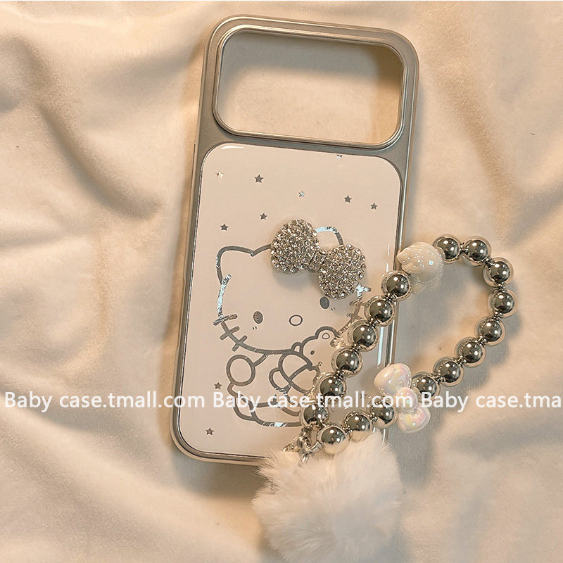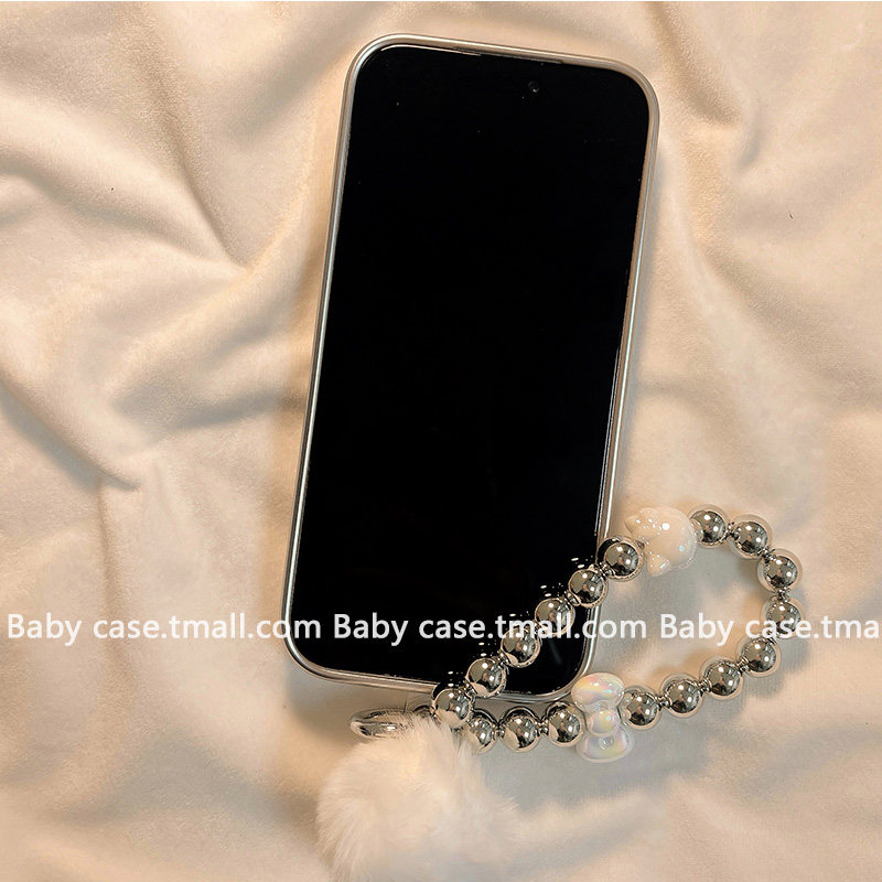 北比ins简约线条猫咪立体蝴蝶结适用苹果17pro手机壳iphone16promax新款15带链条17电镀银14pm女13可爱16全包