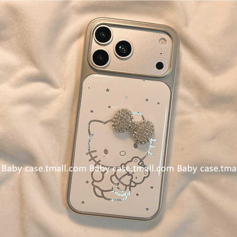 卡通可爱闪钻蝴蝶结线条猫咪适用苹果手机壳