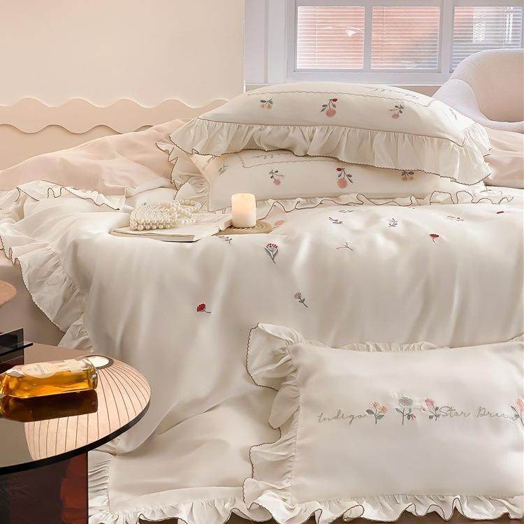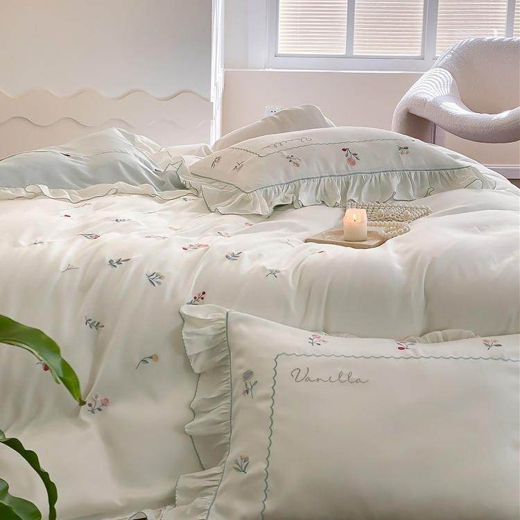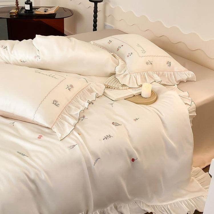 清新田园风80支兰精天丝刺绣四件套春夏丝滑凉爽冰丝床单床品