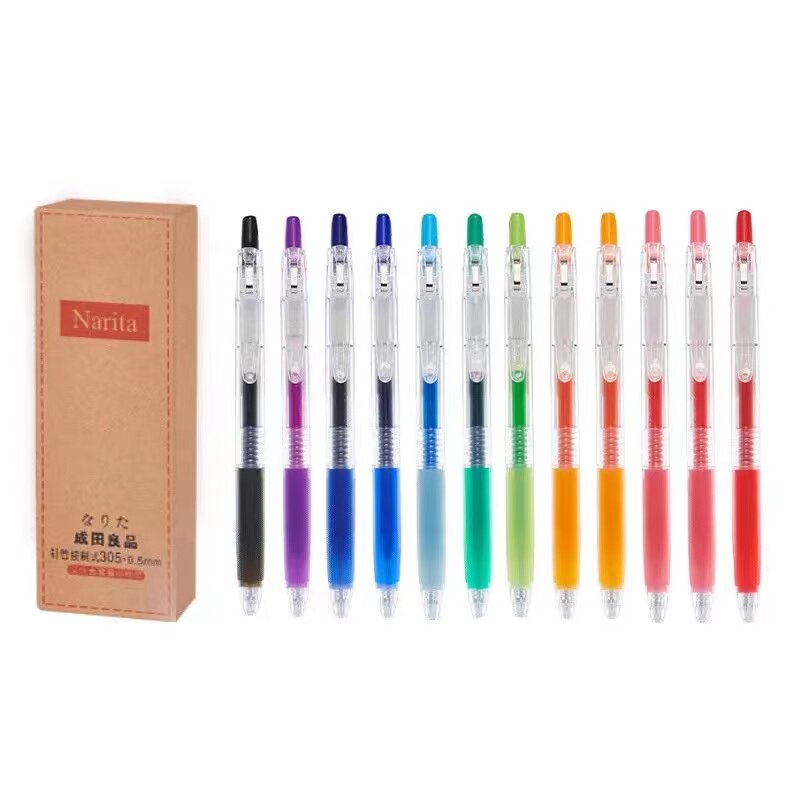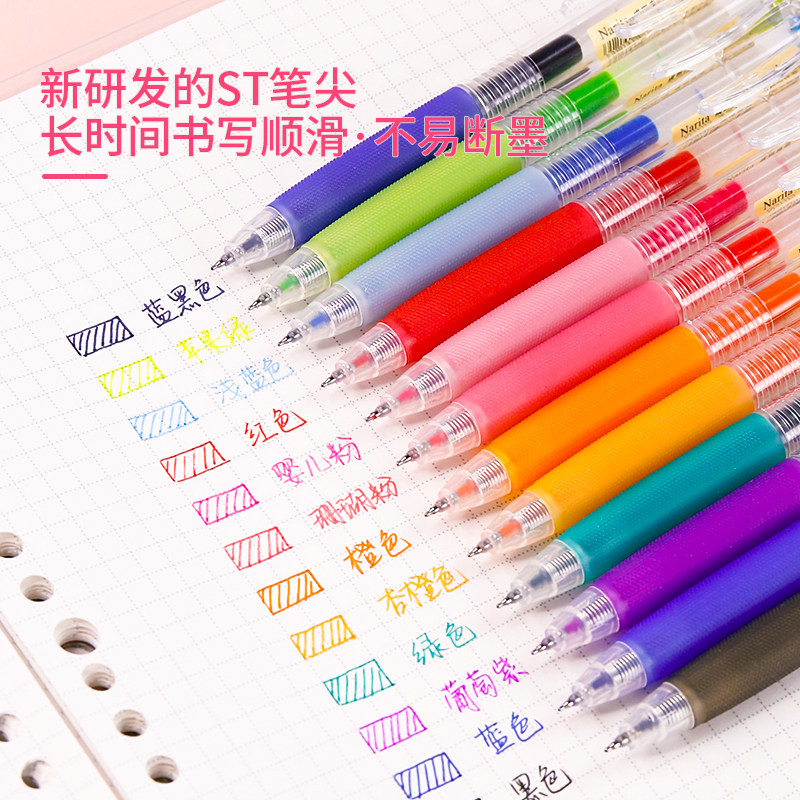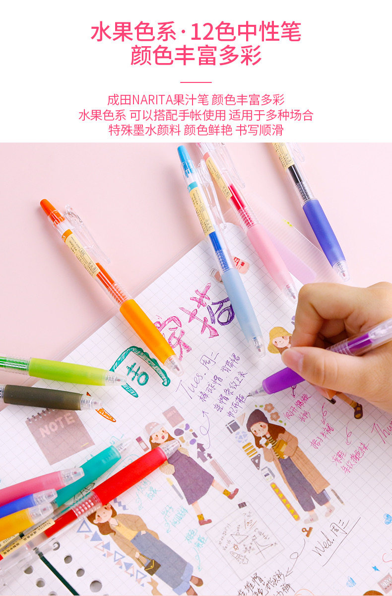 Narita成田良品果汁笔305按动彩色中性笔12色0.5mm学生手帐用文具黑色考试水笔签字笔啫喱色可换芯彩笔