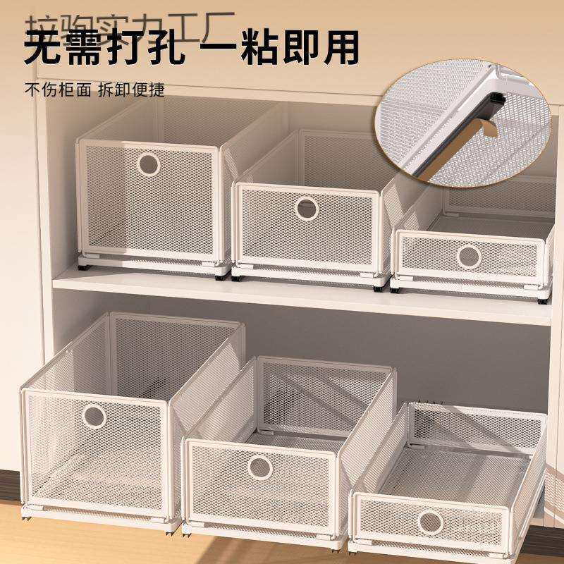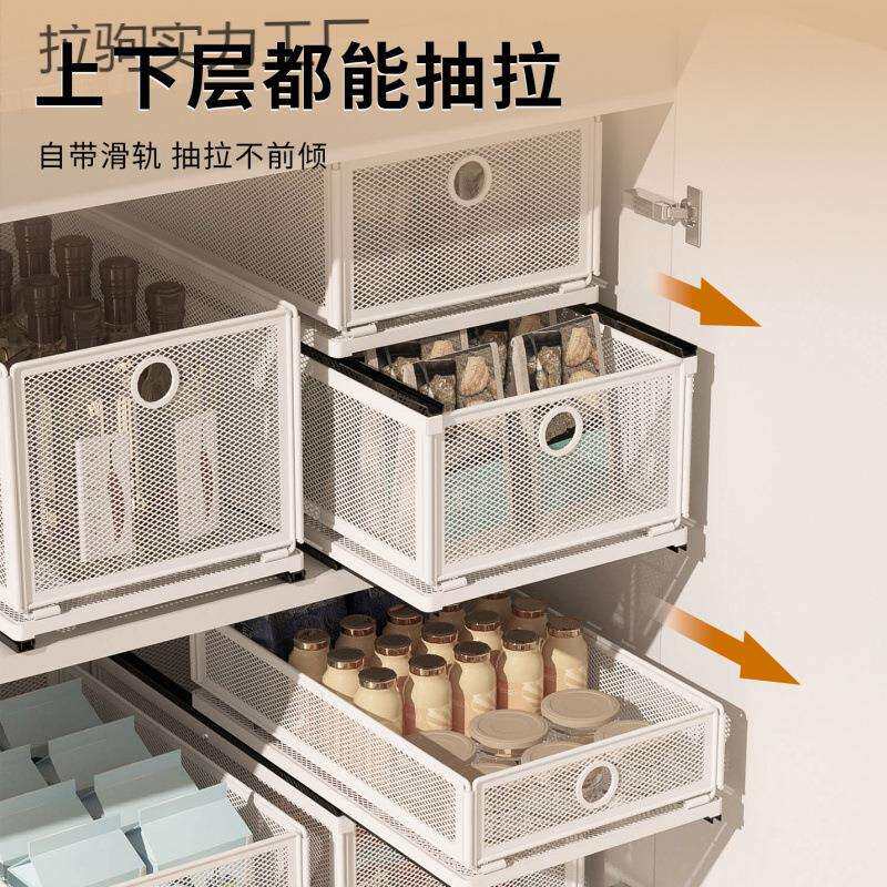 抽拉折叠收纳筐厨房调料瓶罐置物架橱柜内抽屉式储物拉篮