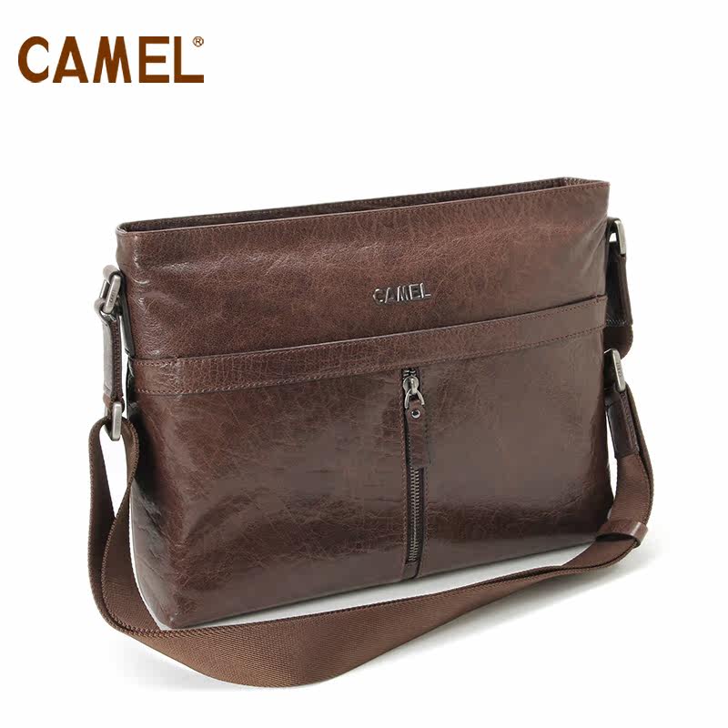 【非卖品】Camel骆驼 头层牛皮 商务横款包 男包 单肩斜跨包皮包