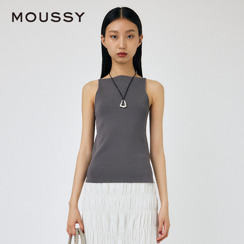 moussy 2024秋季新品简约风基础通勤露肩针织背心女010HAS70-3971