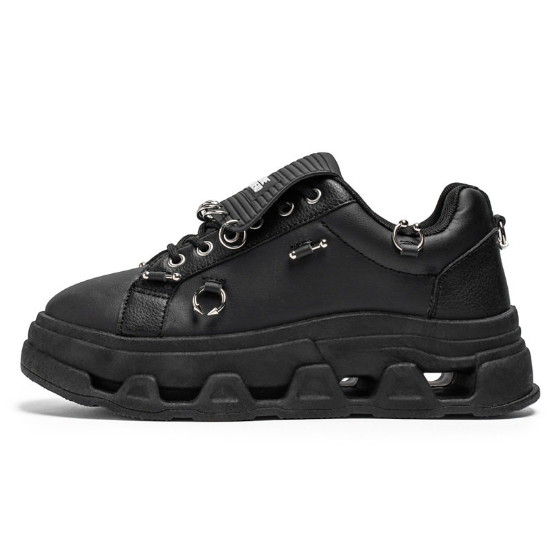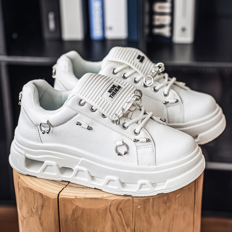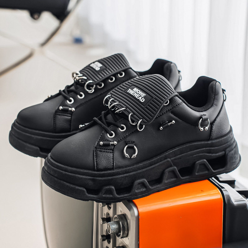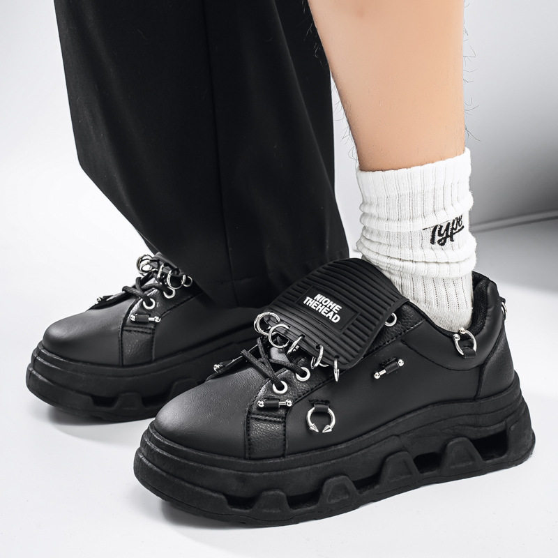 跨境大码男鞋厚底增高低帮板鞋青少年潮流个性朋克金属休闲潮鞋子