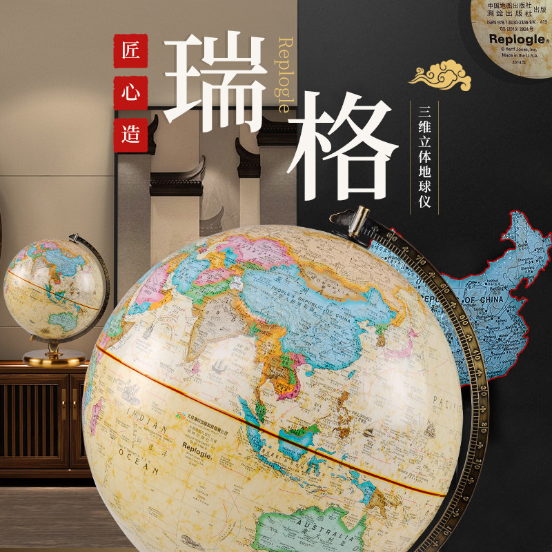 【天屿】美国制造3d立体浮雕凹凸32cm大号世界地球仪高清学生用初中生标准教学版摆件办公室摆设儿童启蒙礼物