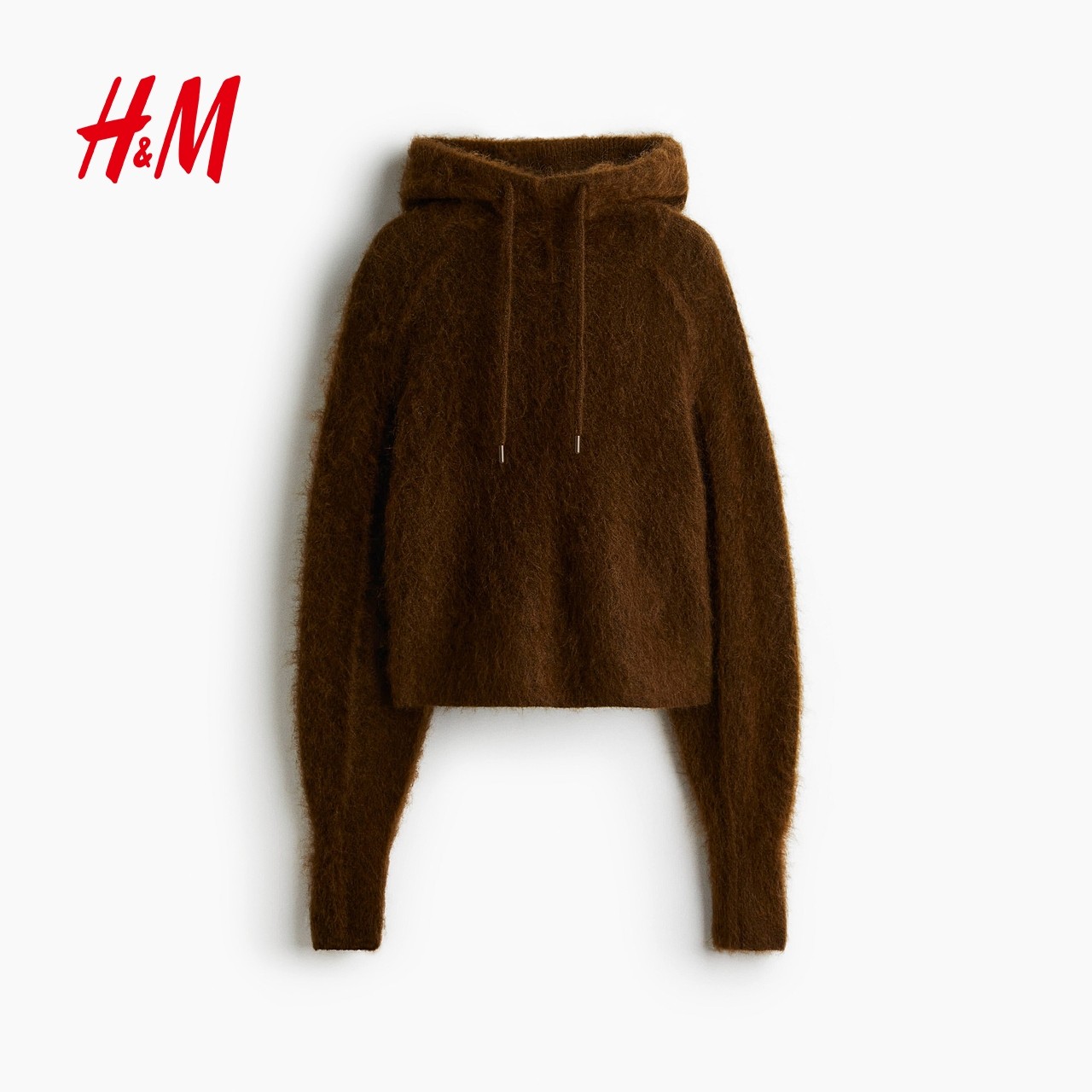 HM女装25冬季新款针织衫马海毛混纺连帽衫1309466