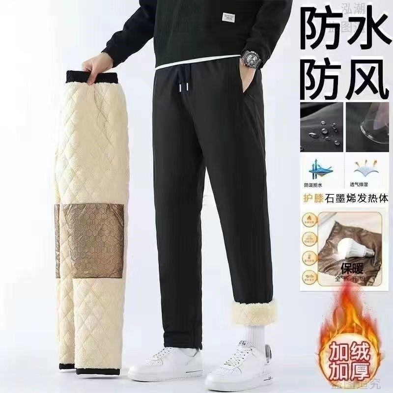 石墨烯羊羔绒裤子男士冬季2025新款加绒加厚棉裤冲锋运动长裤