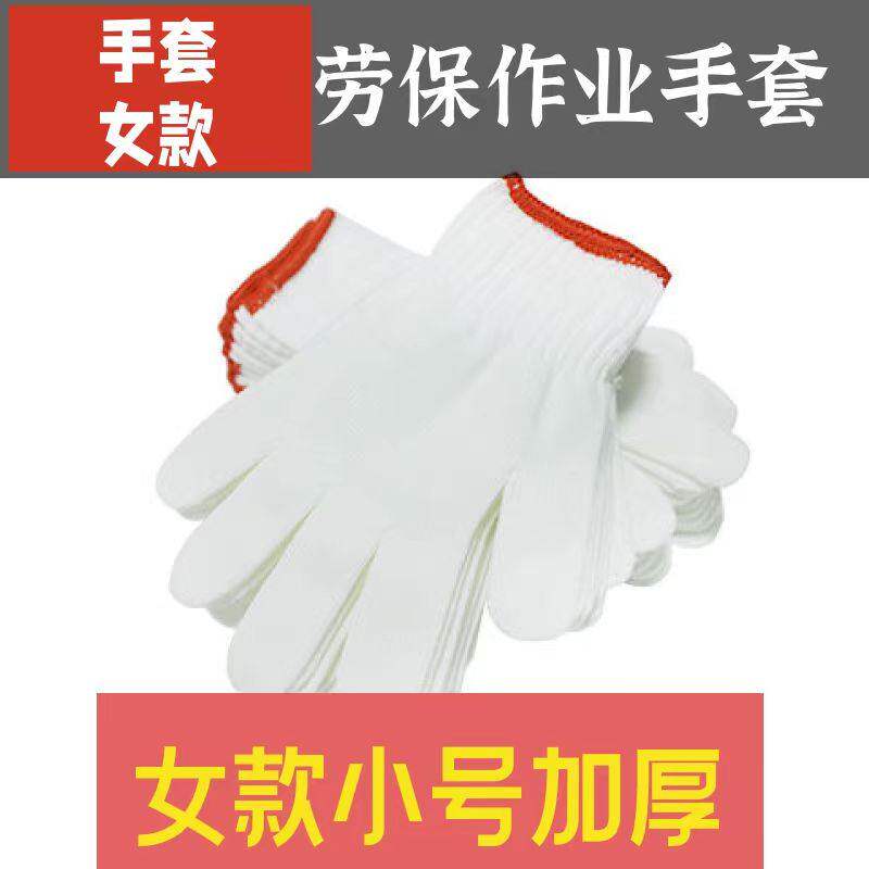 女士劳保手套学生小号棉线防滑加厚耐磨尼龙干活劳动防护小手纯棉