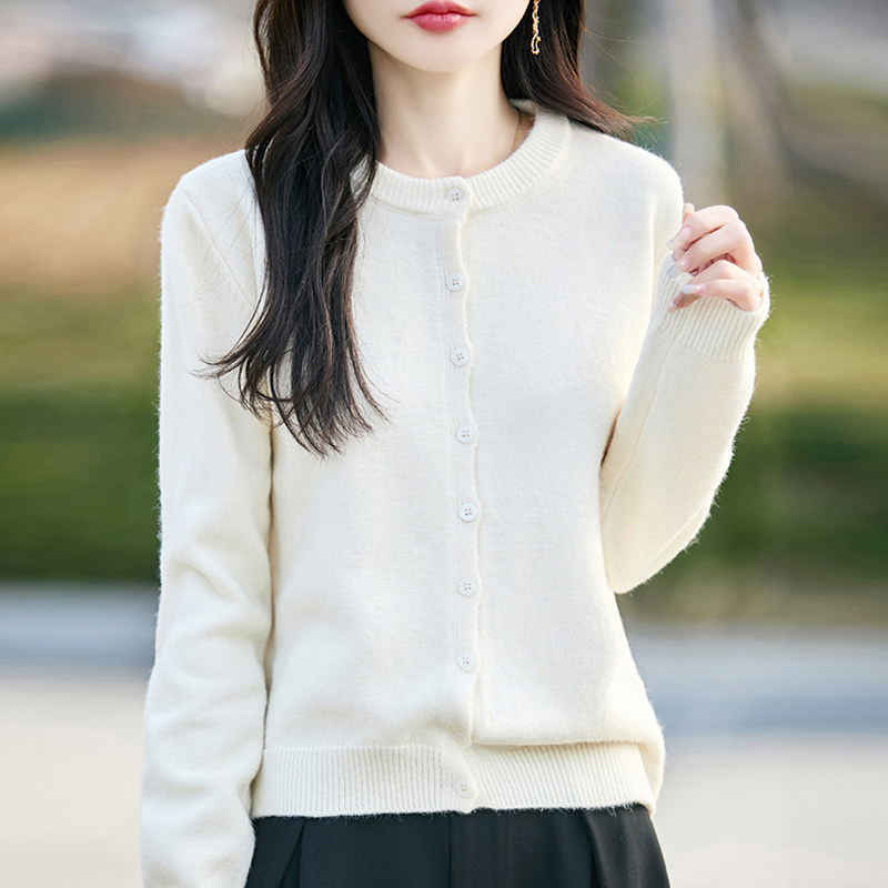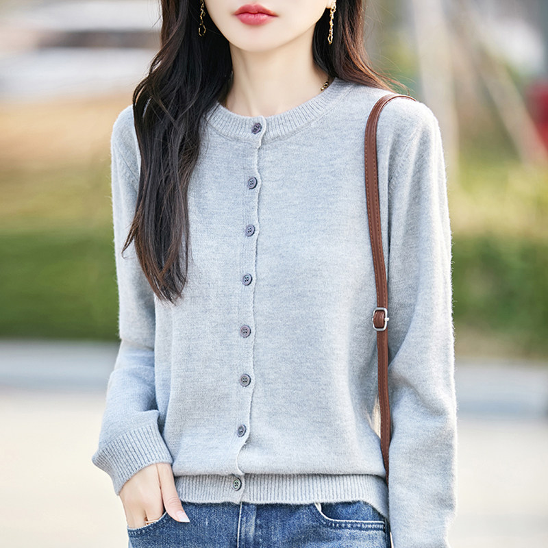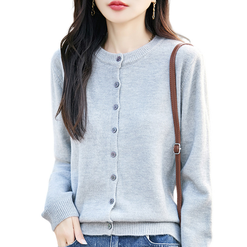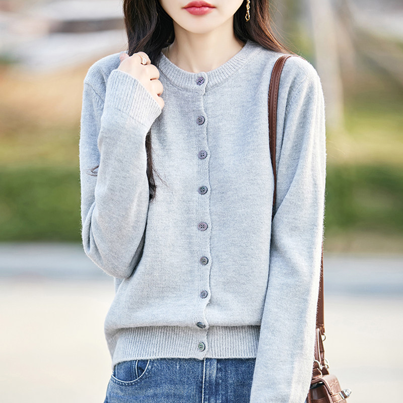 春秋薄款羊毛针织开衫女韩版圆领宽松短款羊绒衫外搭毛衣外套上衣