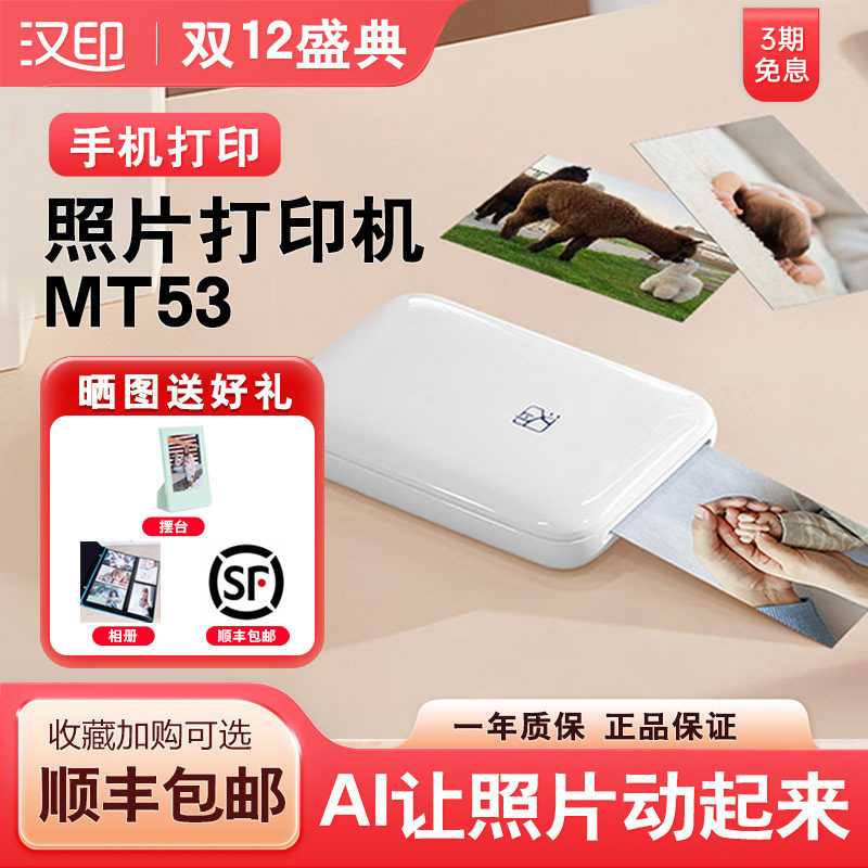 【顺丰包邮】汉印照片打印机 MT53家用小型手机照片相片洗照片 彩色便携式迷你冲印机 口袋便携无线三寸照片