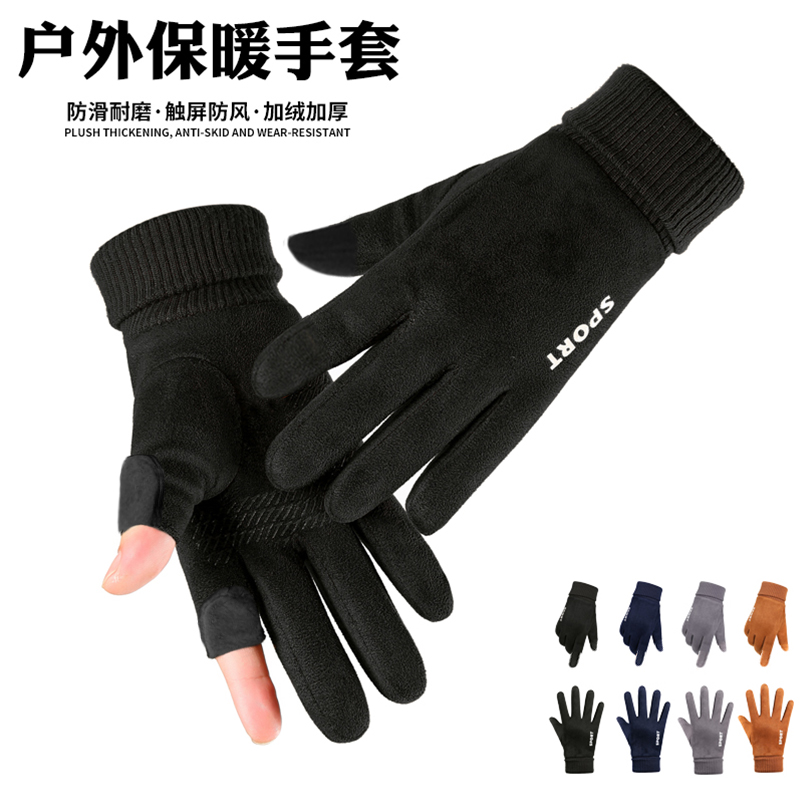 手套男冬季防风加绒保暖触屏骑行开车摩托车外卖半指漏指防水防滑